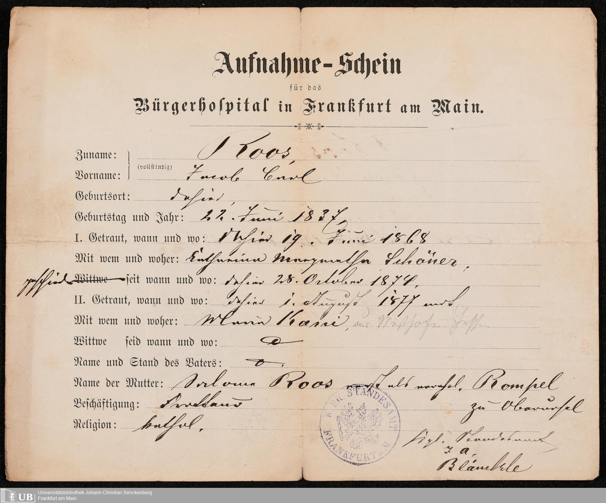 B 5 Dr. Senckenbergische Stiftung, 219 - Legitimationspapiere und Zeugnisse