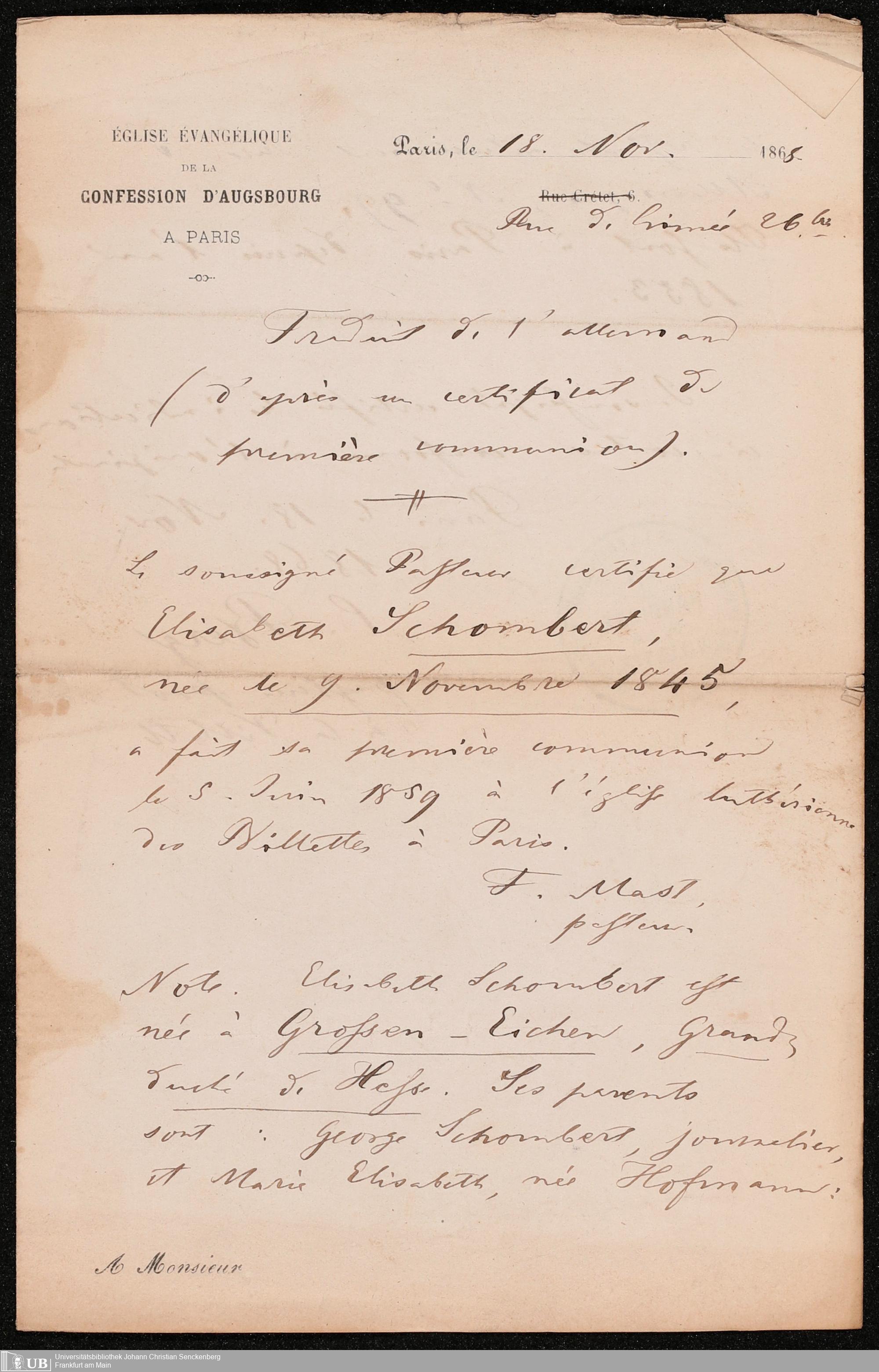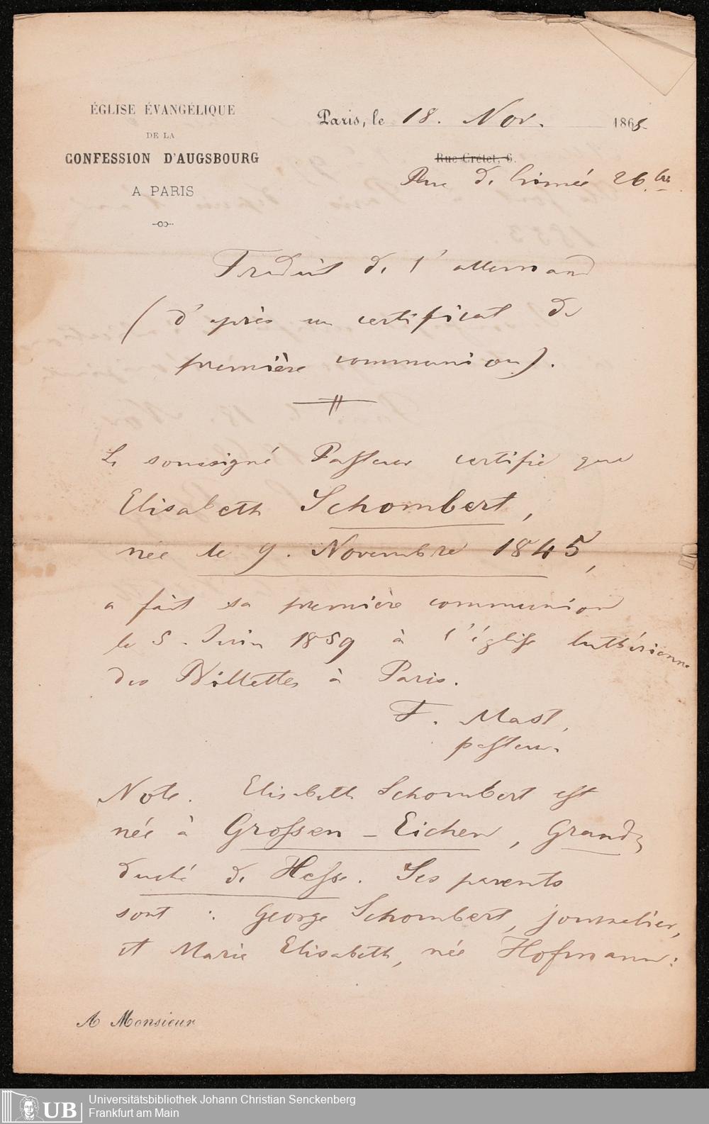 B 5 Dr. Senckenbergische Stiftung, 219 - Legitimationspapiere und Zeugnisse