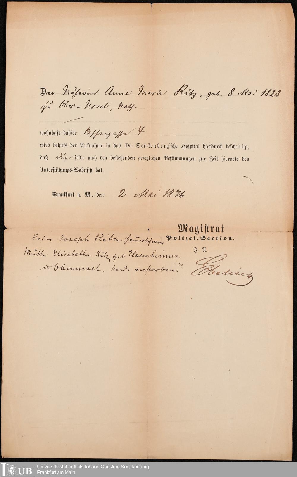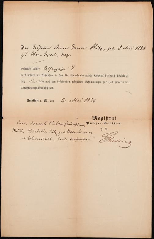B 5 Dr. Senckenbergische Stiftung, 219 - Legitimationspapiere und Zeugnisse