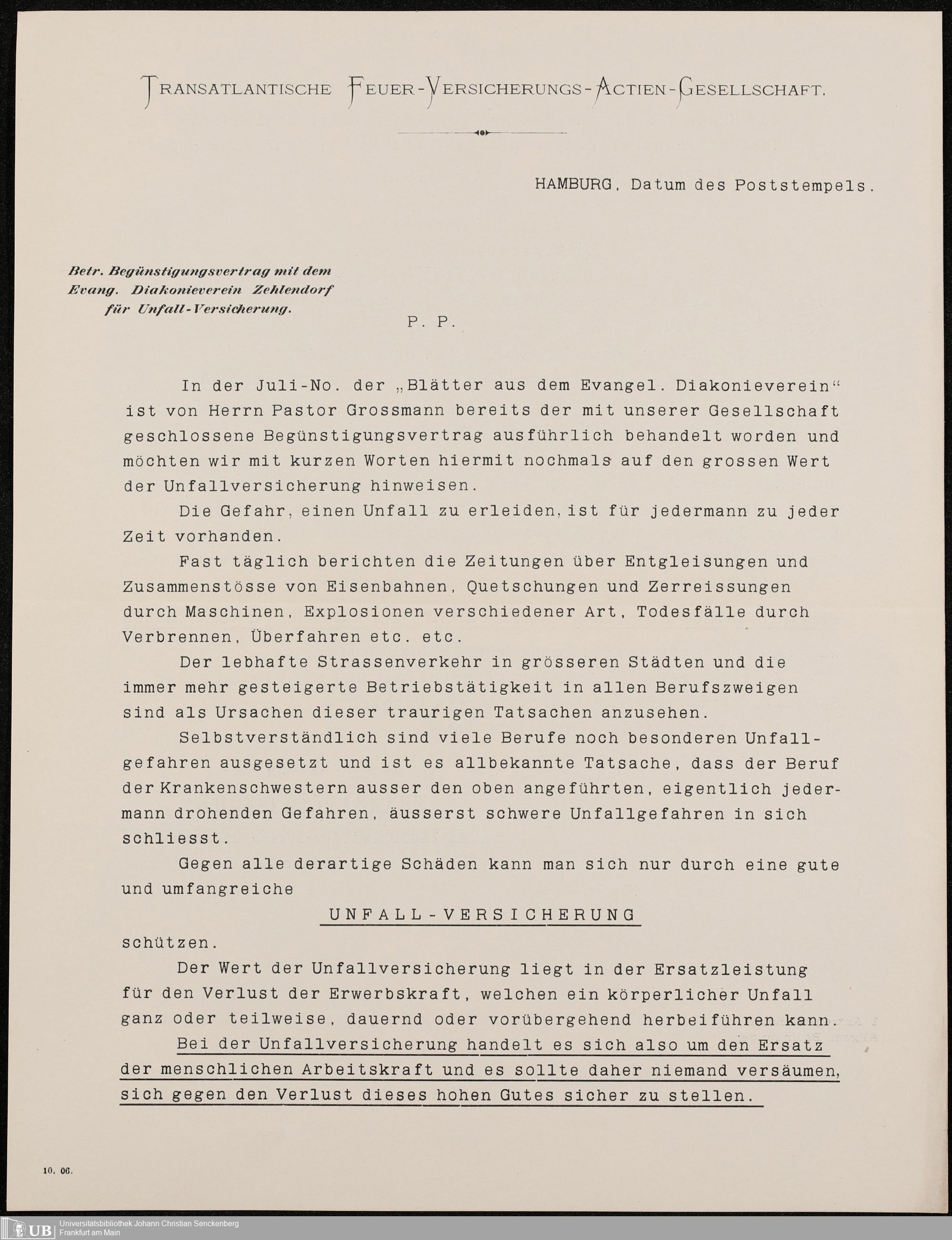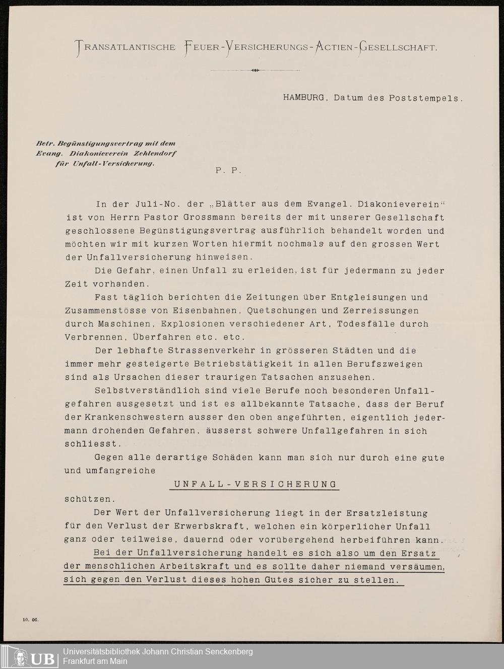 B 5 Dr. Senckenbergische Stiftung, 216 - Unfallversicherung des Pflegepersonals