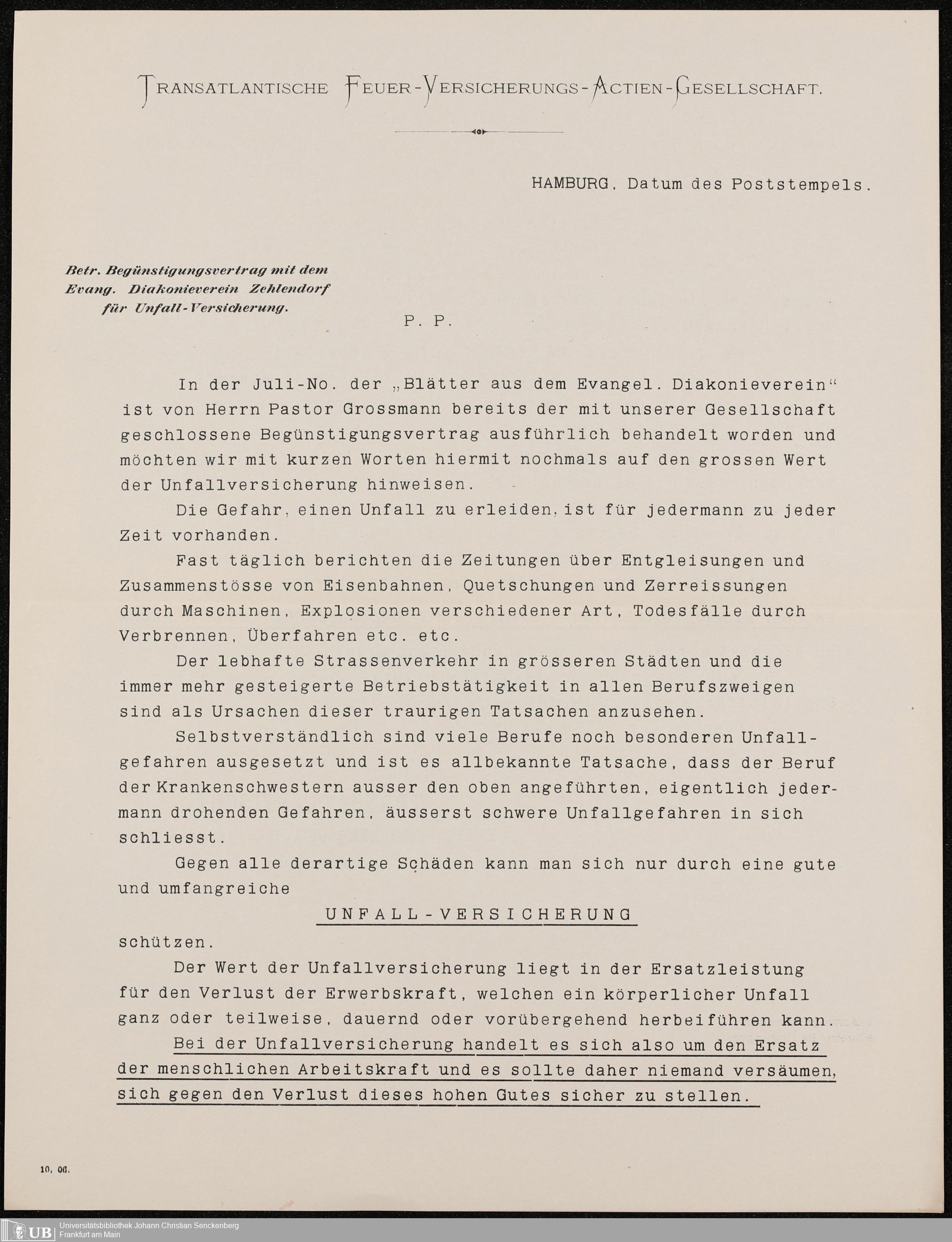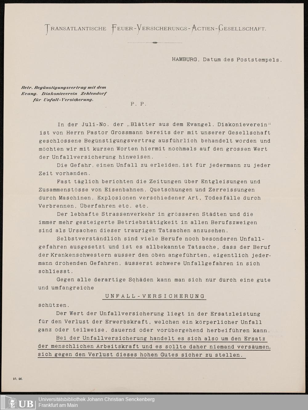 B 5 Dr. Senckenbergische Stiftung, 216 - Unfallversicherung des Pflegepersonals