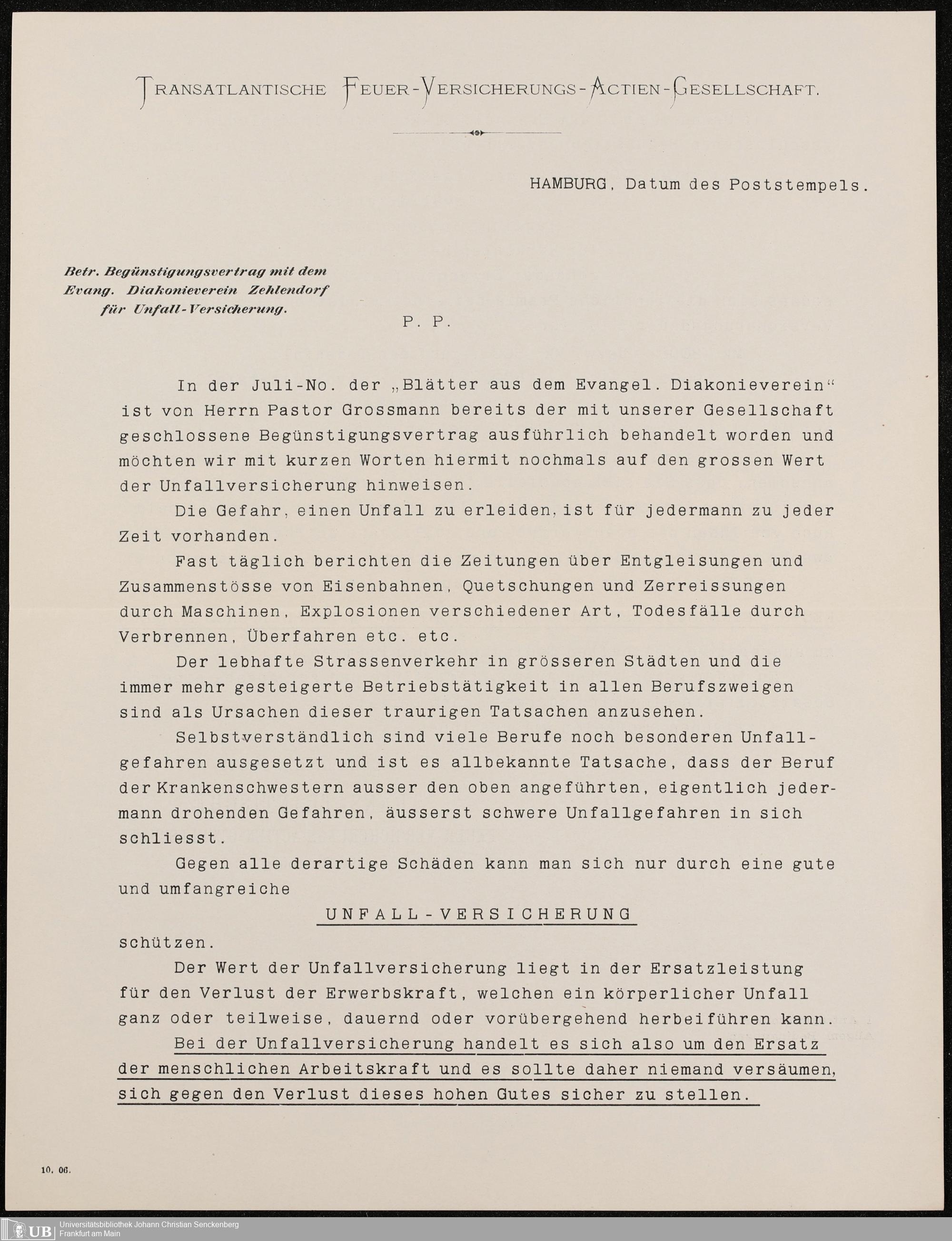 B 5 Dr. Senckenbergische Stiftung, 216 - Unfallversicherung des Pflegepersonals
