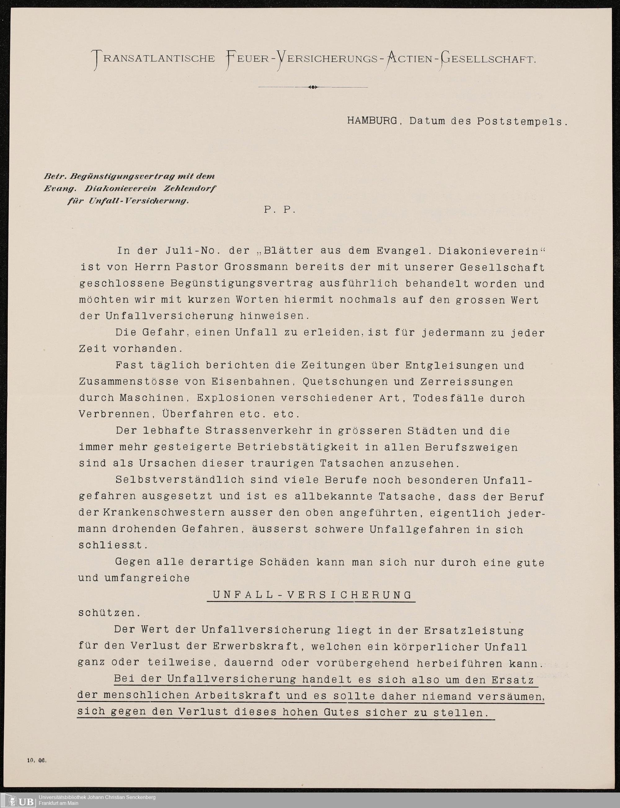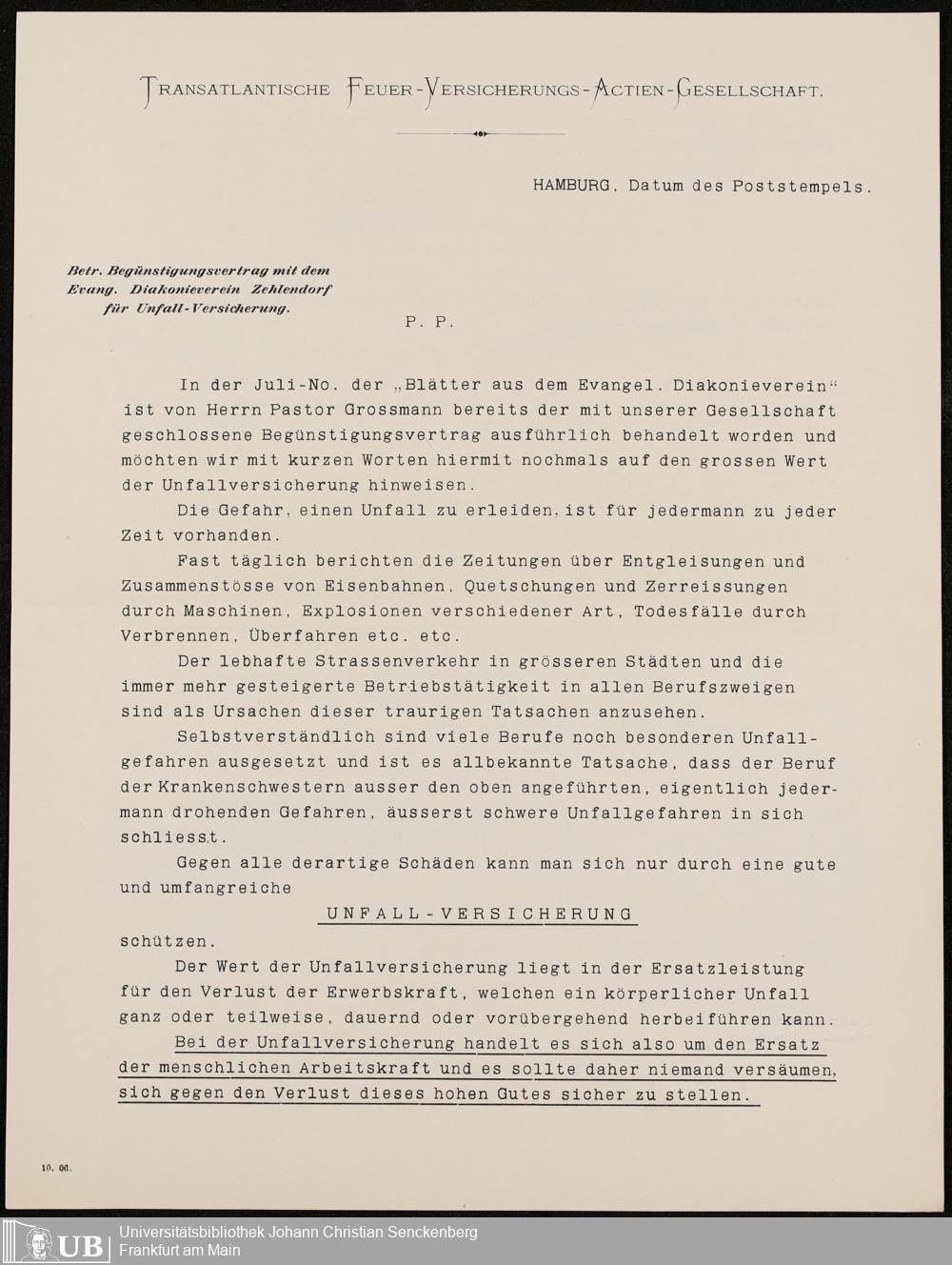 B 5 Dr. Senckenbergische Stiftung, 216 - Unfallversicherung des Pflegepersonals