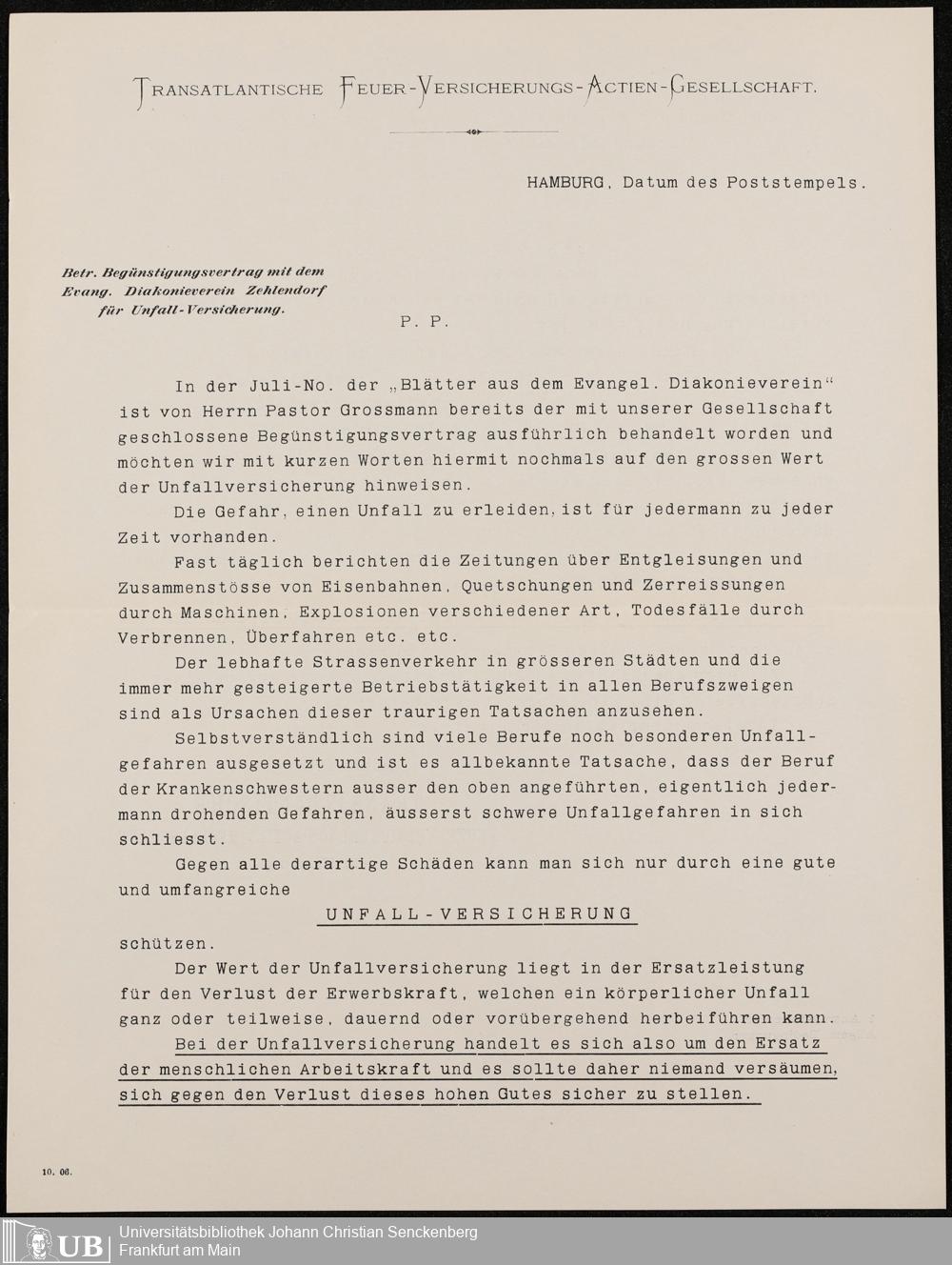 B 5 Dr. Senckenbergische Stiftung, 216 - Unfallversicherung des Pflegepersonals