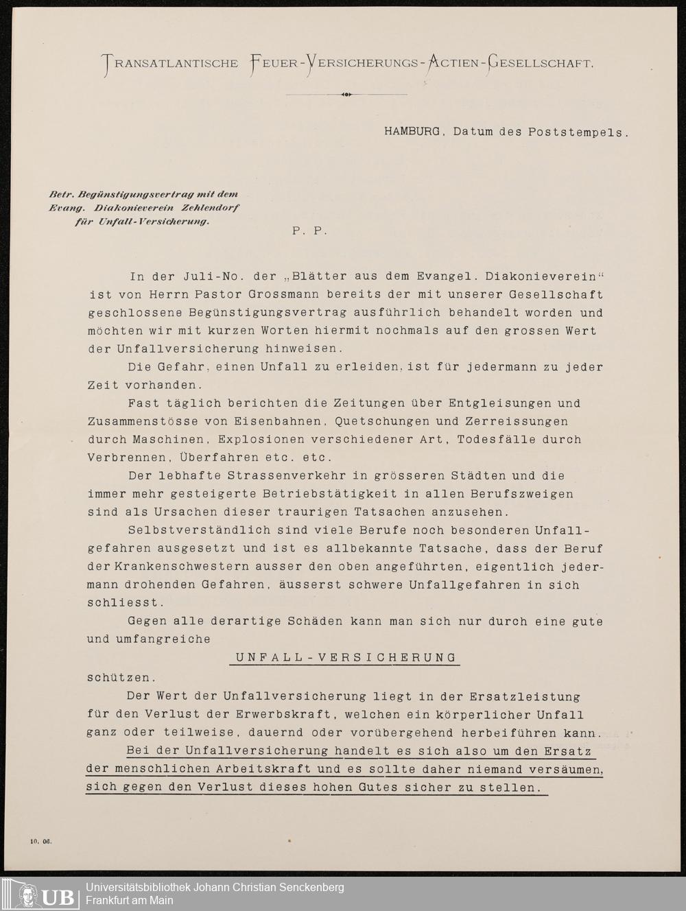 B 5 Dr. Senckenbergische Stiftung, 216 - Unfallversicherung des Pflegepersonals