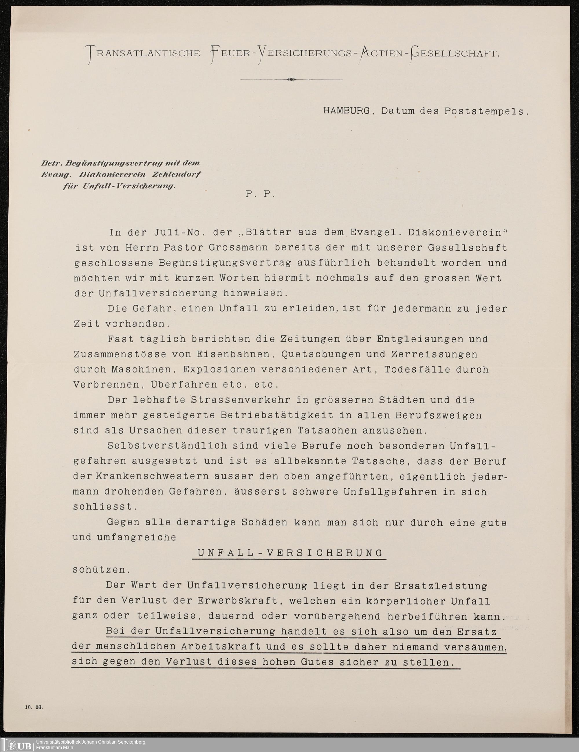 B 5 Dr. Senckenbergische Stiftung, 216 - Unfallversicherung des Pflegepersonals