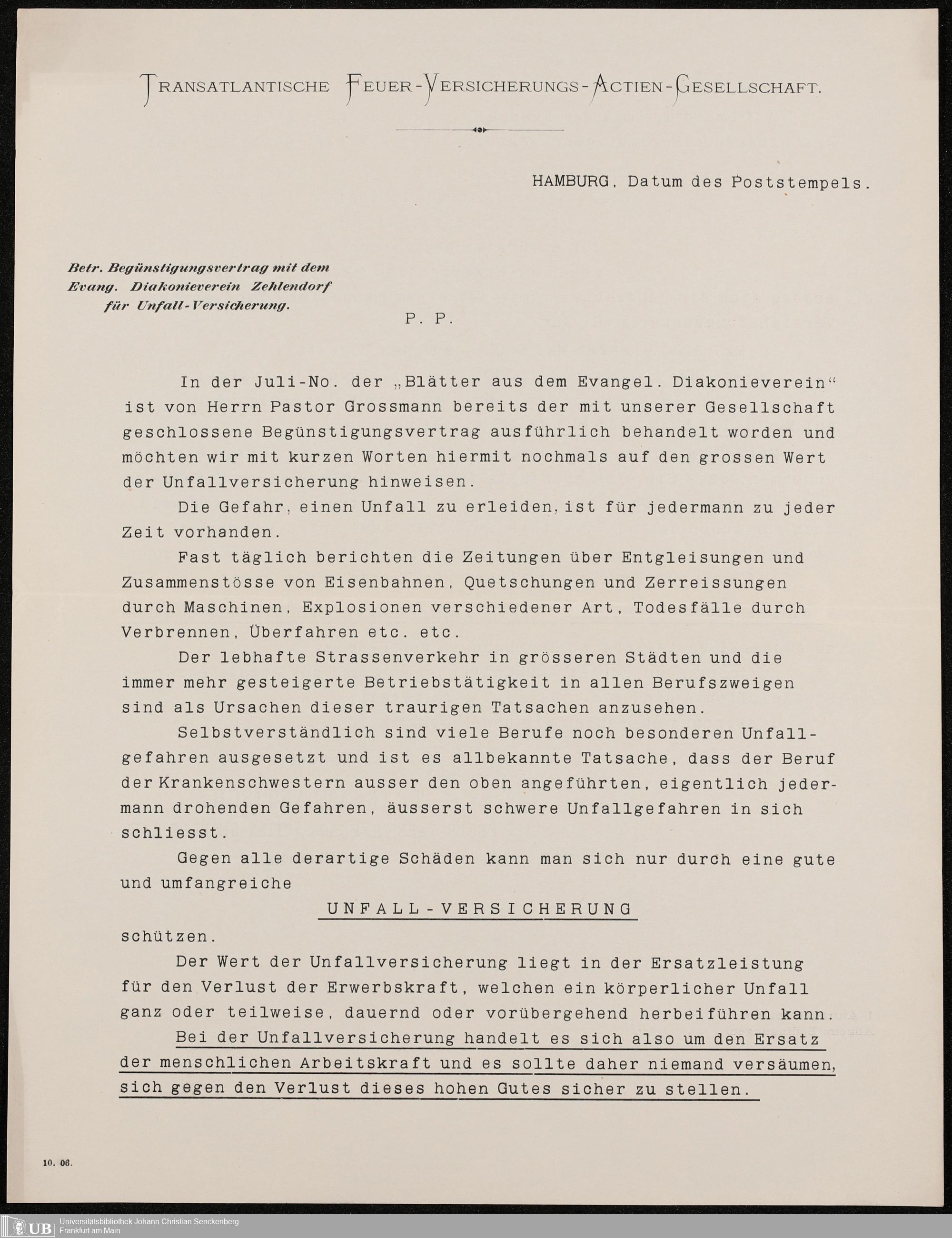 B 5 Dr. Senckenbergische Stiftung, 216 - Unfallversicherung des Pflegepersonals