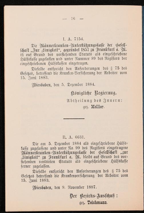 B 5 Dr. Senckenbergische Stiftung, 249 - Verhandlungen der Administration mit der Ortskrankenkasse