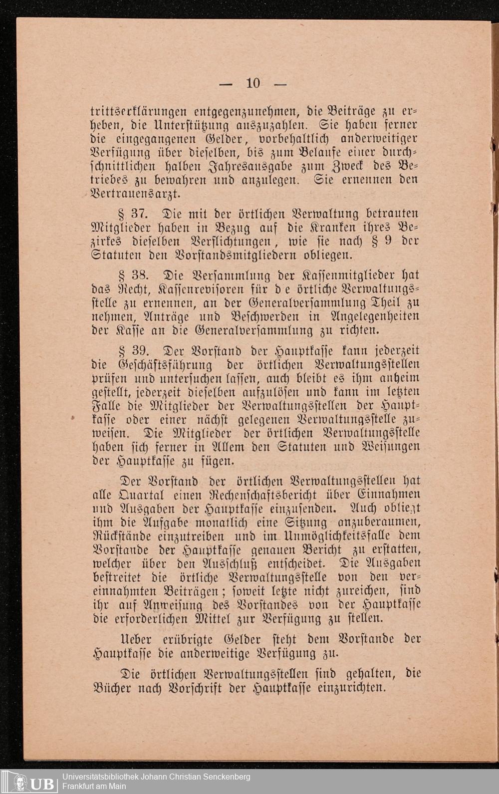 B 5 Dr. Senckenbergische Stiftung, 249 - Verhandlungen der Administration mit der Ortskrankenkasse