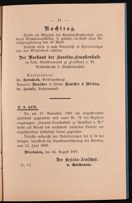 B 5 Dr. Senckenbergische Stiftung, 249 - Verhandlungen der Administration mit der Ortskrankenkasse