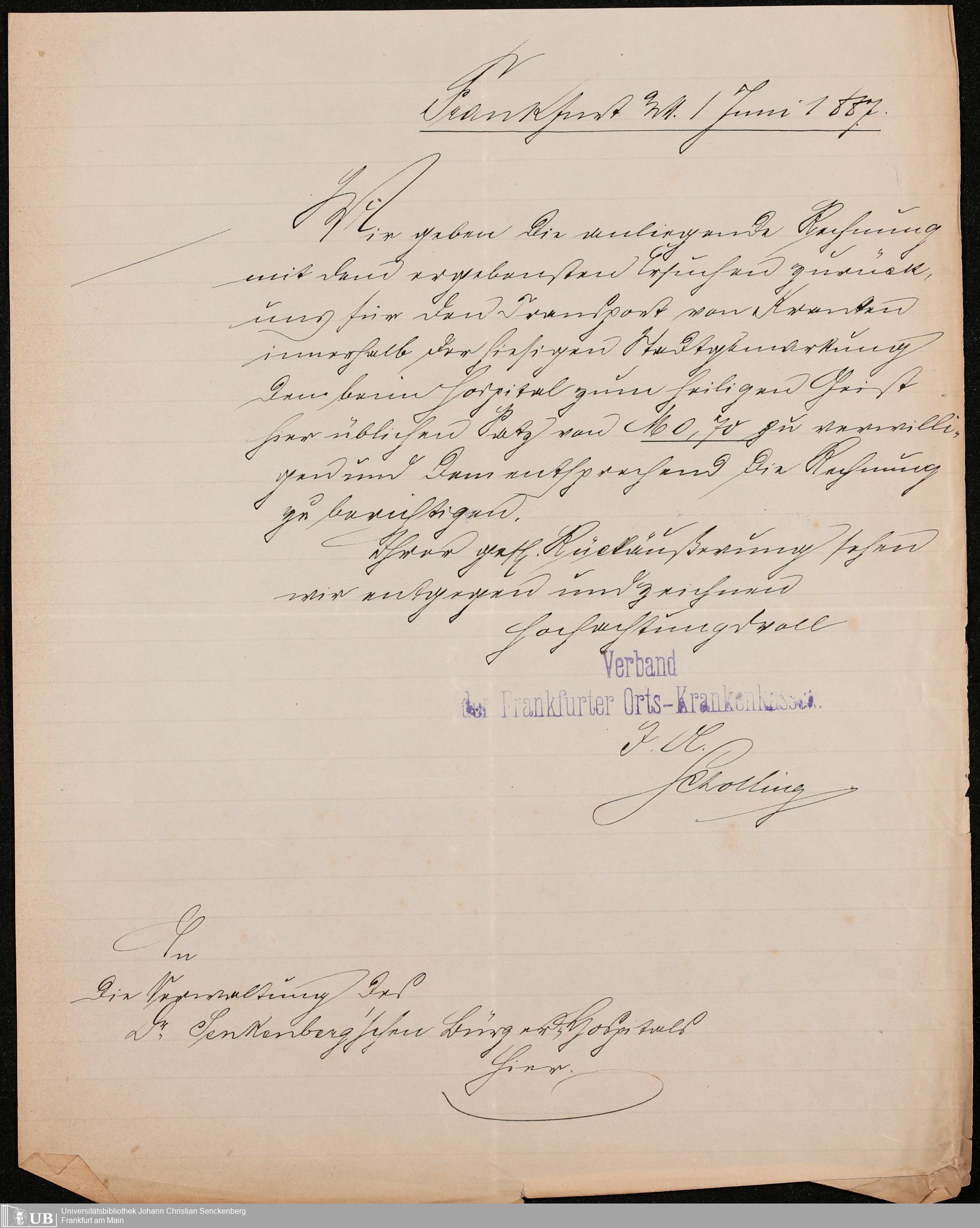 B 5 Dr. Senckenbergische Stiftung, 249 - Verhandlungen der Administration mit der Ortskrankenkasse