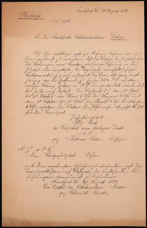 B 5 Dr. Senckenbergische Stiftung, 249 - Verhandlungen der Administration mit der Ortskrankenkasse