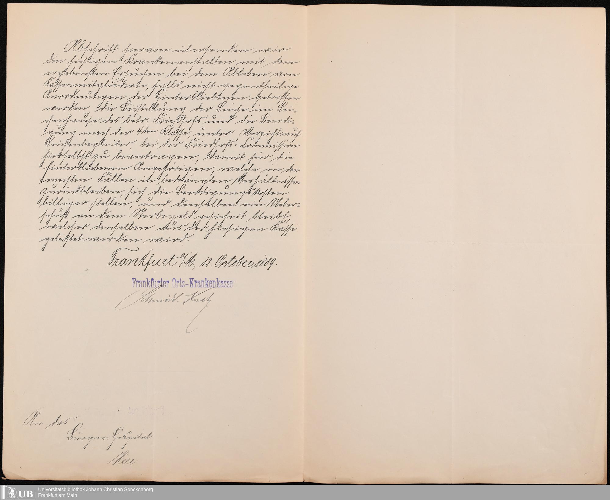 B 5 Dr. Senckenbergische Stiftung, 249 - Verhandlungen der Administration mit der Ortskrankenkasse