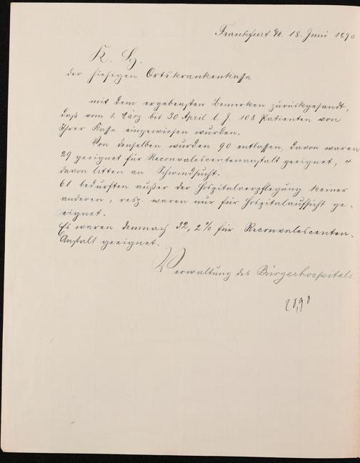 B 5 Dr. Senckenbergische Stiftung, 249 - Verhandlungen der Administration mit der Ortskrankenkasse