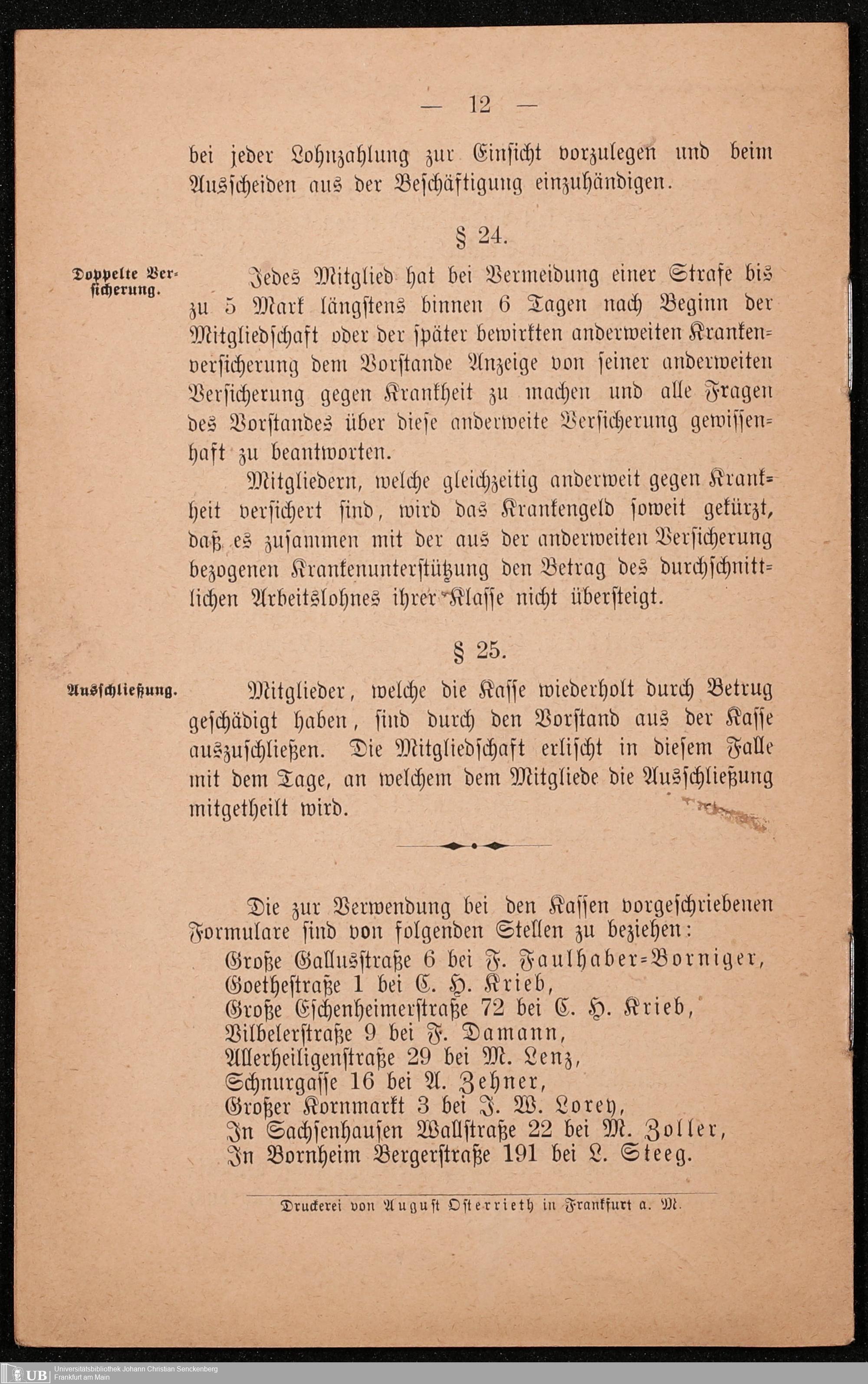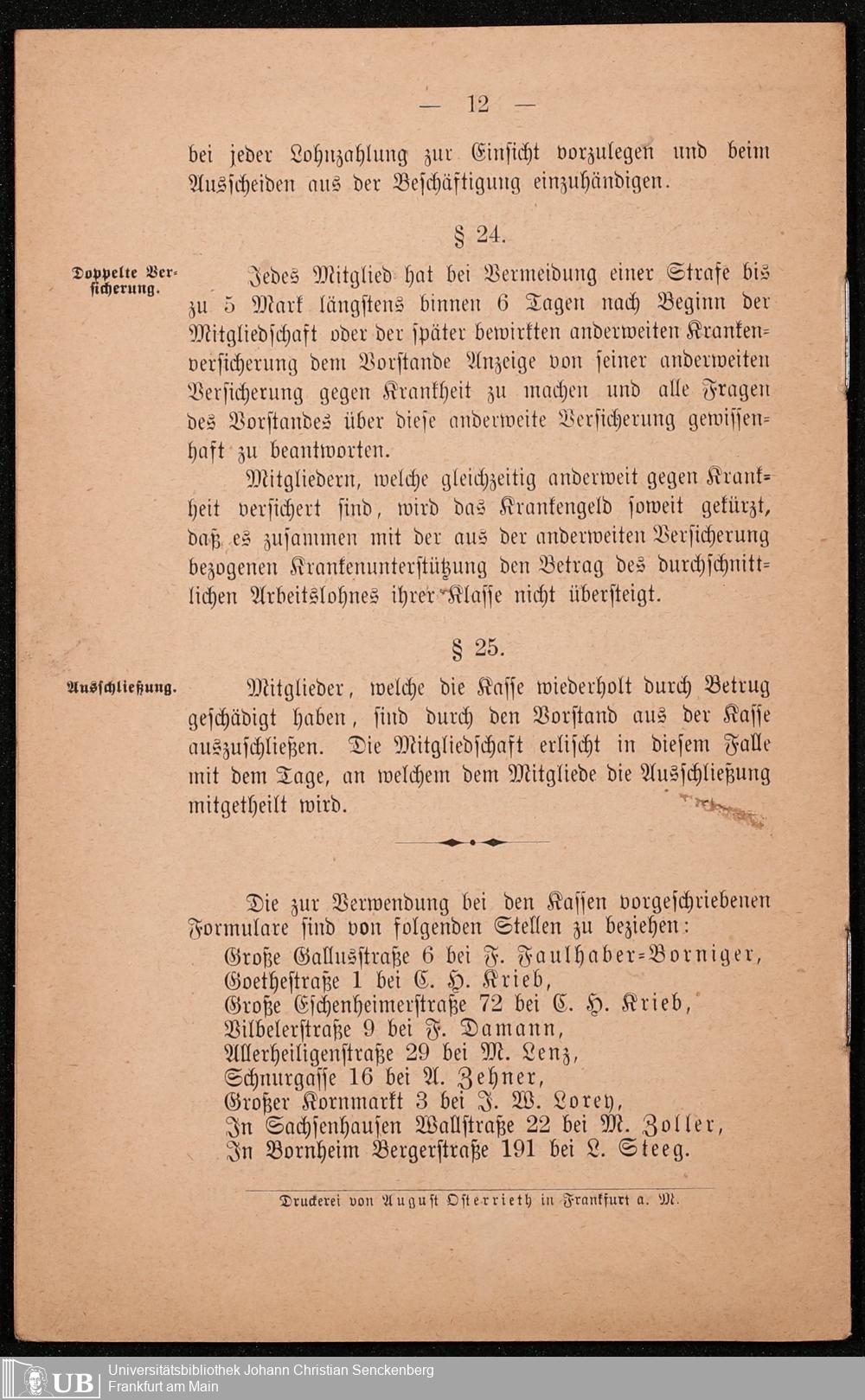 B 5 Dr. Senckenbergische Stiftung, 249 - Verhandlungen der Administration mit der Ortskrankenkasse