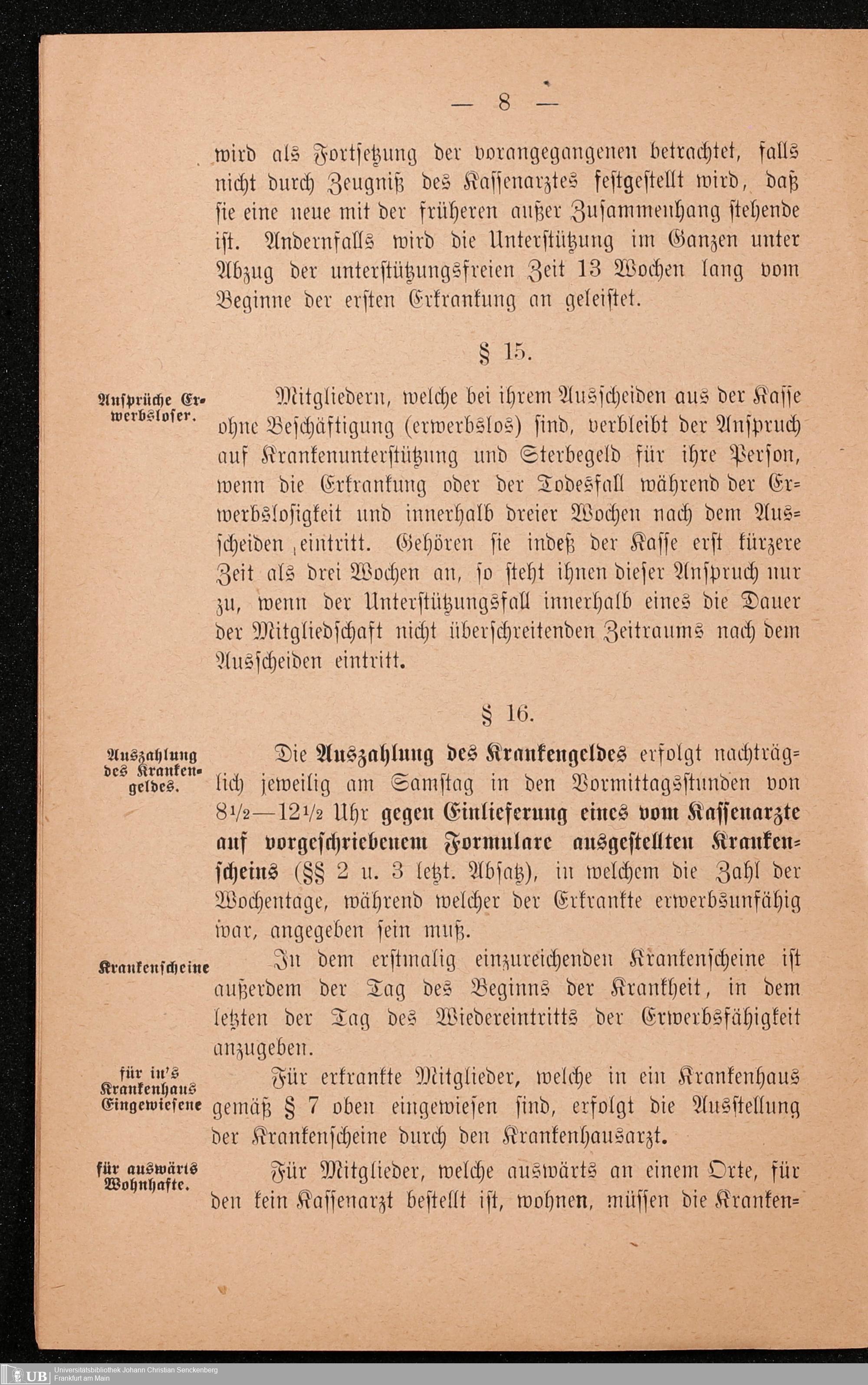 B 5 Dr. Senckenbergische Stiftung, 249 - Verhandlungen der Administration mit der Ortskrankenkasse