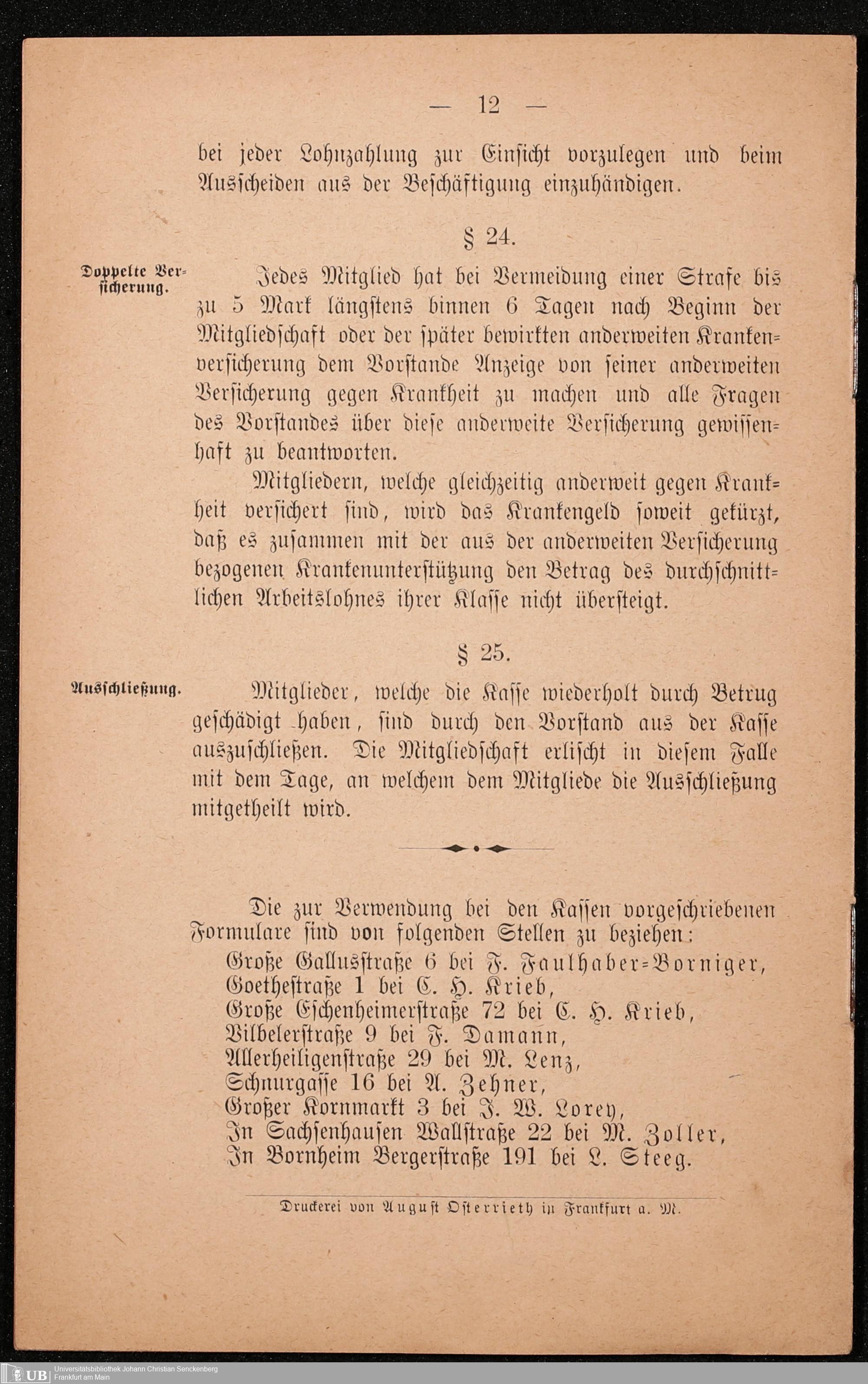 B 5 Dr. Senckenbergische Stiftung, 249 - Verhandlungen der Administration mit der Ortskrankenkasse