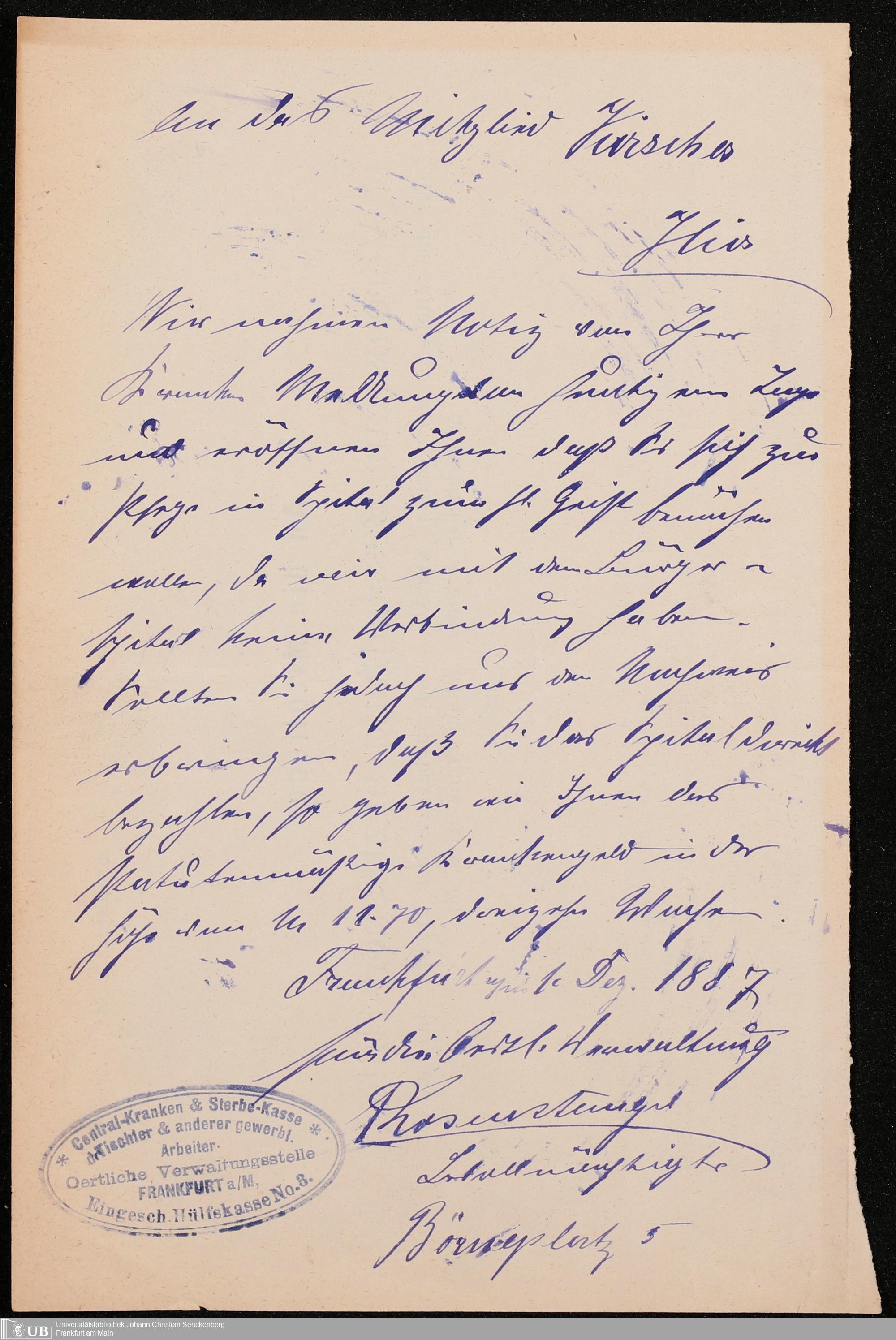 B 5 Dr. Senckenbergische Stiftung, 249 - Verhandlungen der Administration mit der Ortskrankenkasse