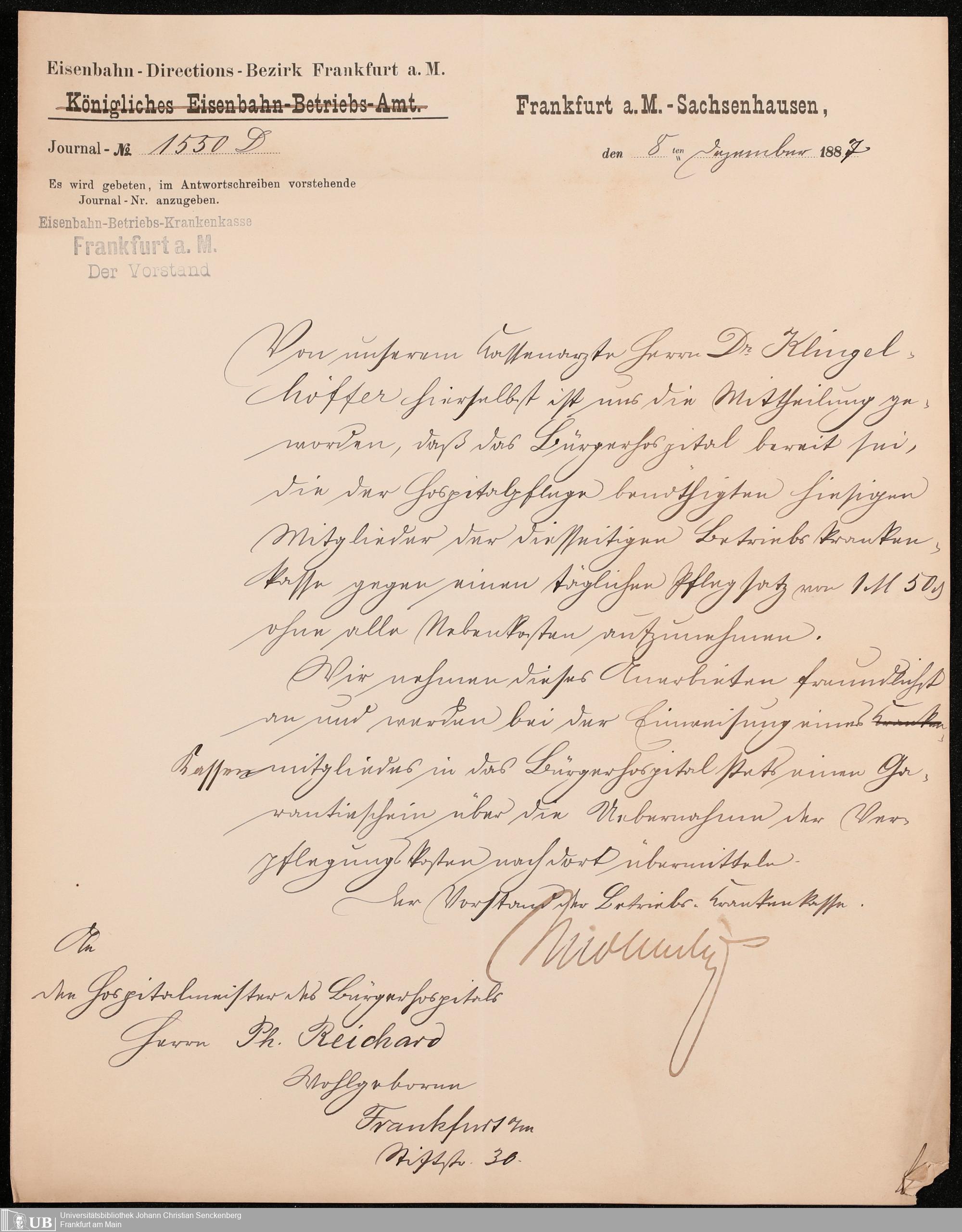 B 5 Dr. Senckenbergische Stiftung, 249 - Verhandlungen der Administration mit der Ortskrankenkasse