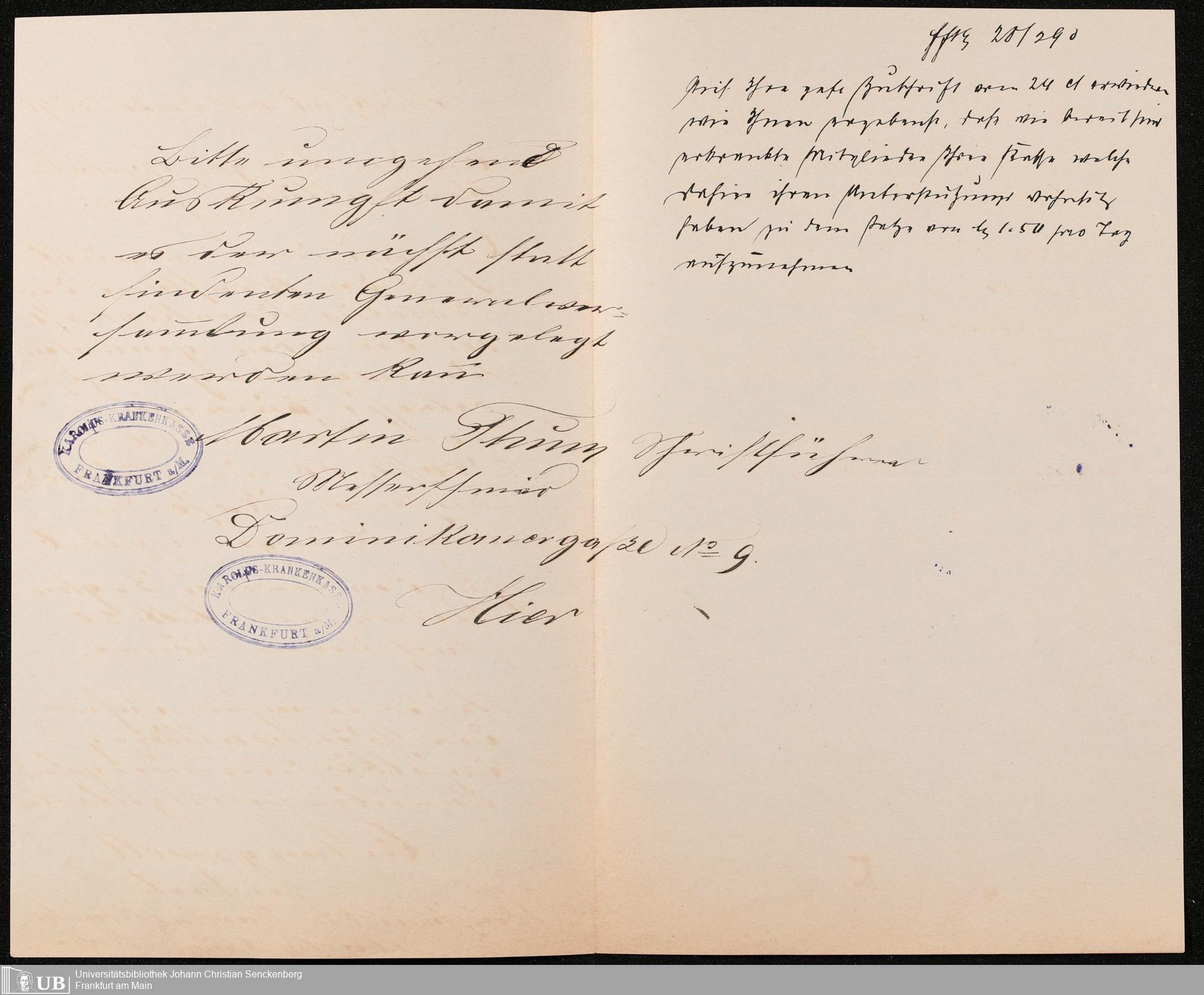 B 5 Dr. Senckenbergische Stiftung, 249 - Verhandlungen der Administration mit der Ortskrankenkasse