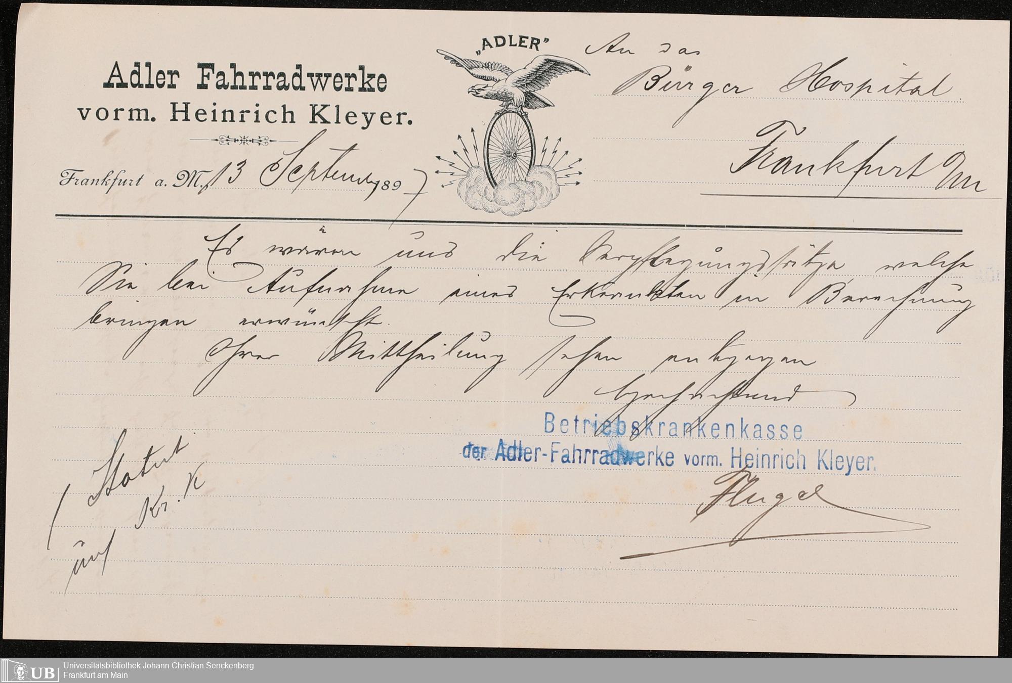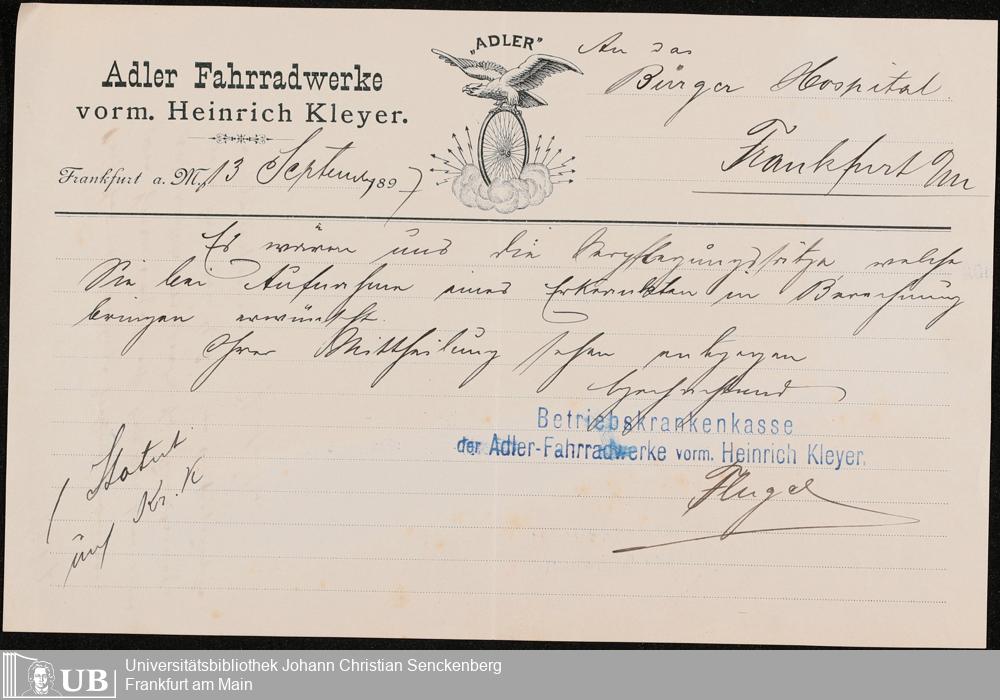 B 5 Dr. Senckenbergische Stiftung, 249 - Verhandlungen der Administration mit der Ortskrankenkasse