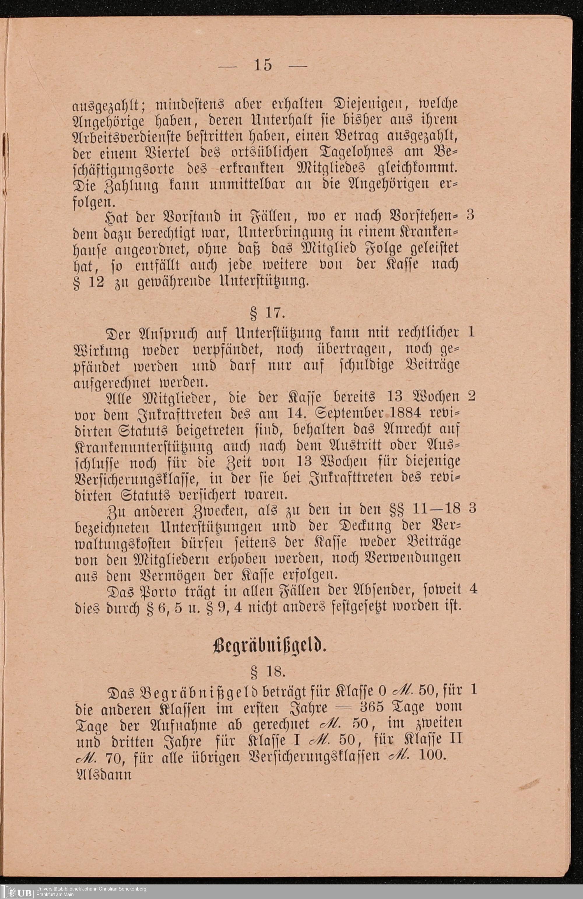 B 5 Dr. Senckenbergische Stiftung, 249 - Verhandlungen der Administration mit der Ortskrankenkasse
