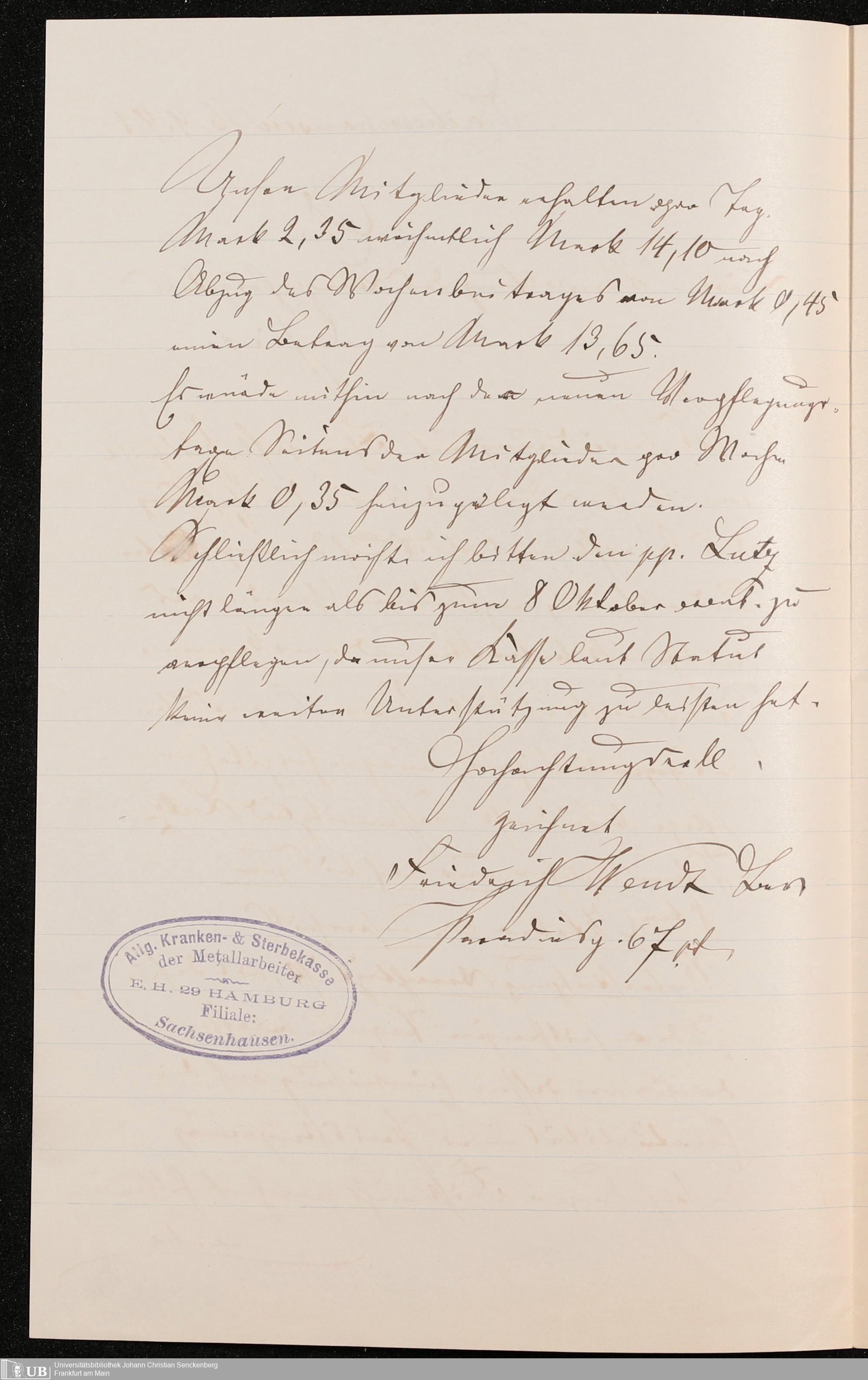 B 5 Dr. Senckenbergische Stiftung, 249 - Verhandlungen der Administration mit der Ortskrankenkasse