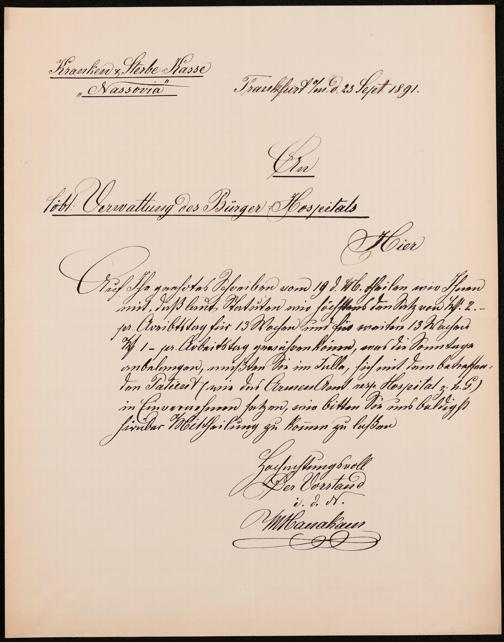 B 5 Dr. Senckenbergische Stiftung, 249 - Verhandlungen der Administration mit der Ortskrankenkasse