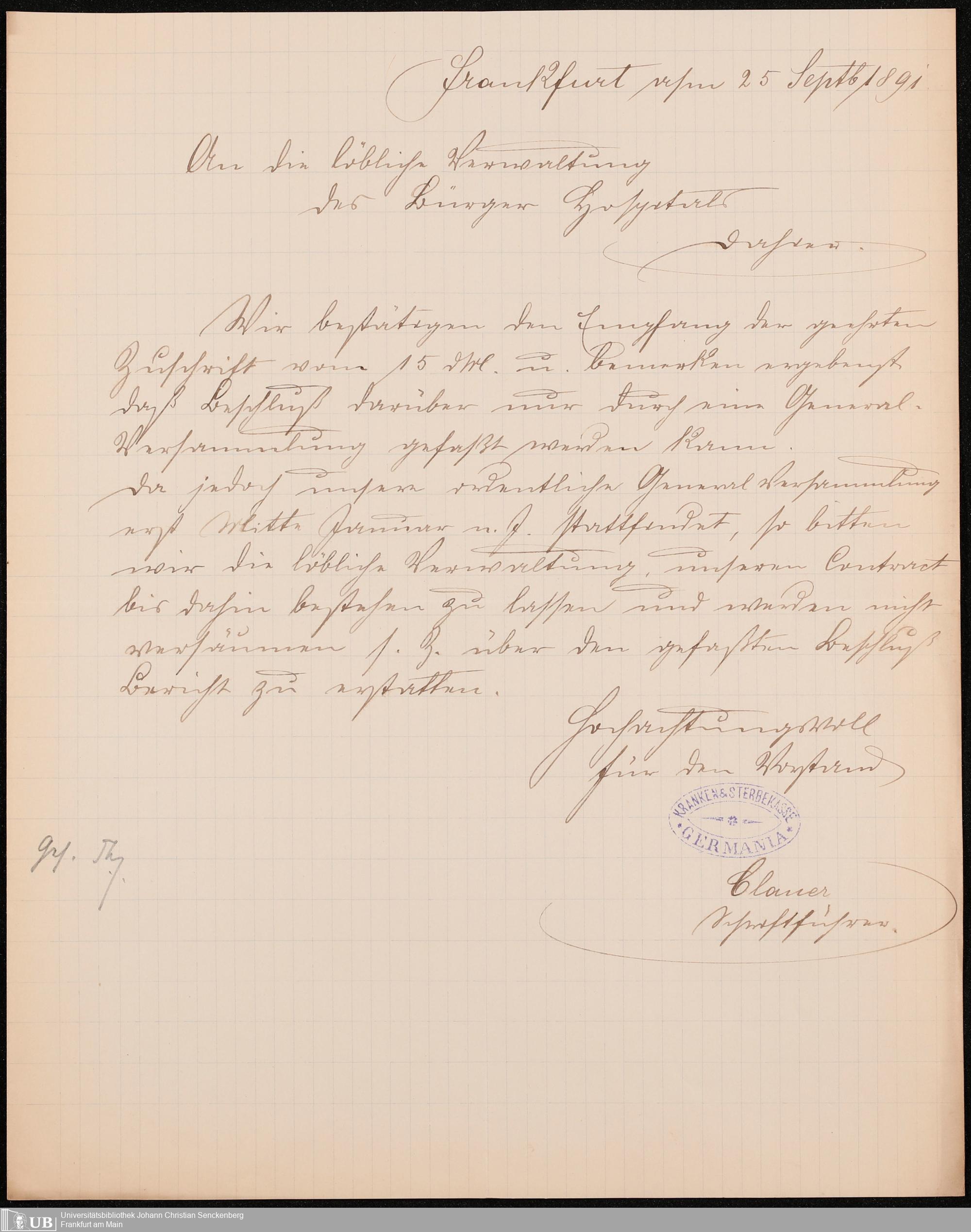 B 5 Dr. Senckenbergische Stiftung, 249 - Verhandlungen der Administration mit der Ortskrankenkasse