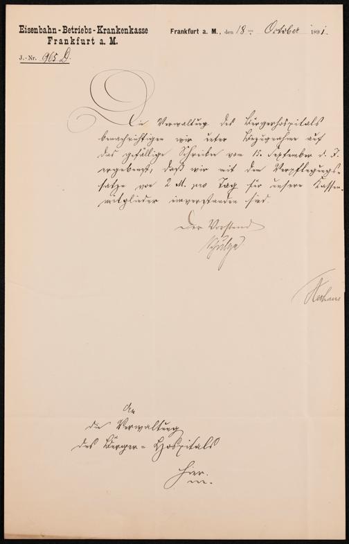 B 5 Dr. Senckenbergische Stiftung, 249 - Verhandlungen der Administration mit der Ortskrankenkasse