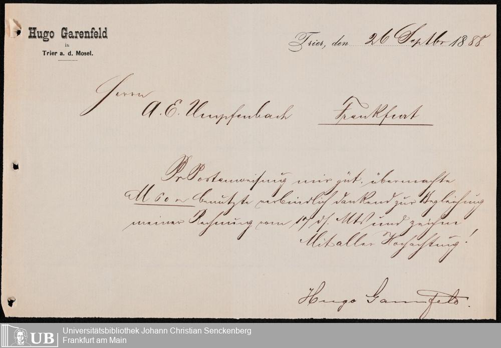 B 5 Dr. Senckenbergische Stiftung, 107 - Testamentsakten Umpfenbach