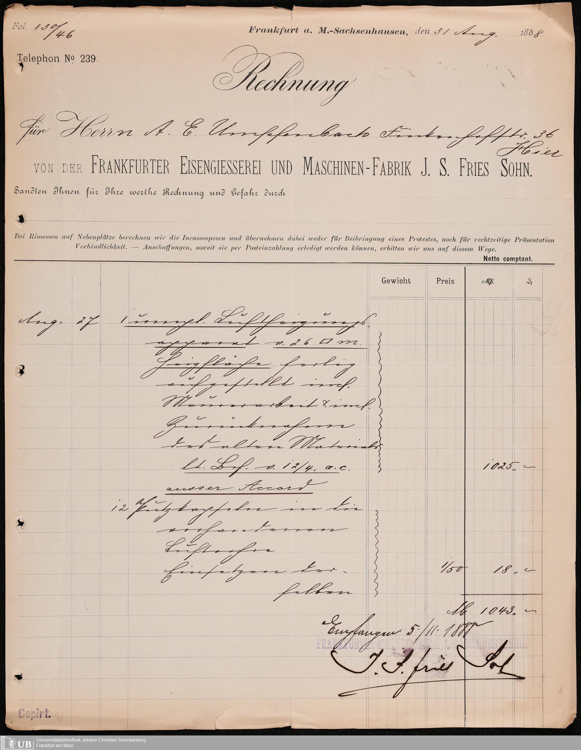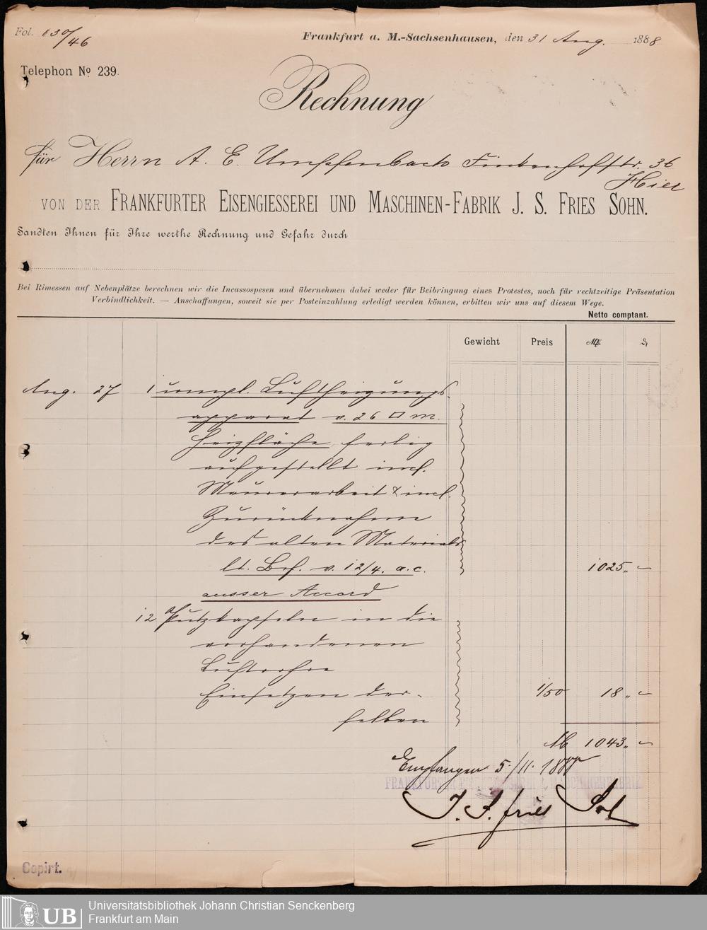 B 5 Dr. Senckenbergische Stiftung, 107 - Testamentsakten Umpfenbach