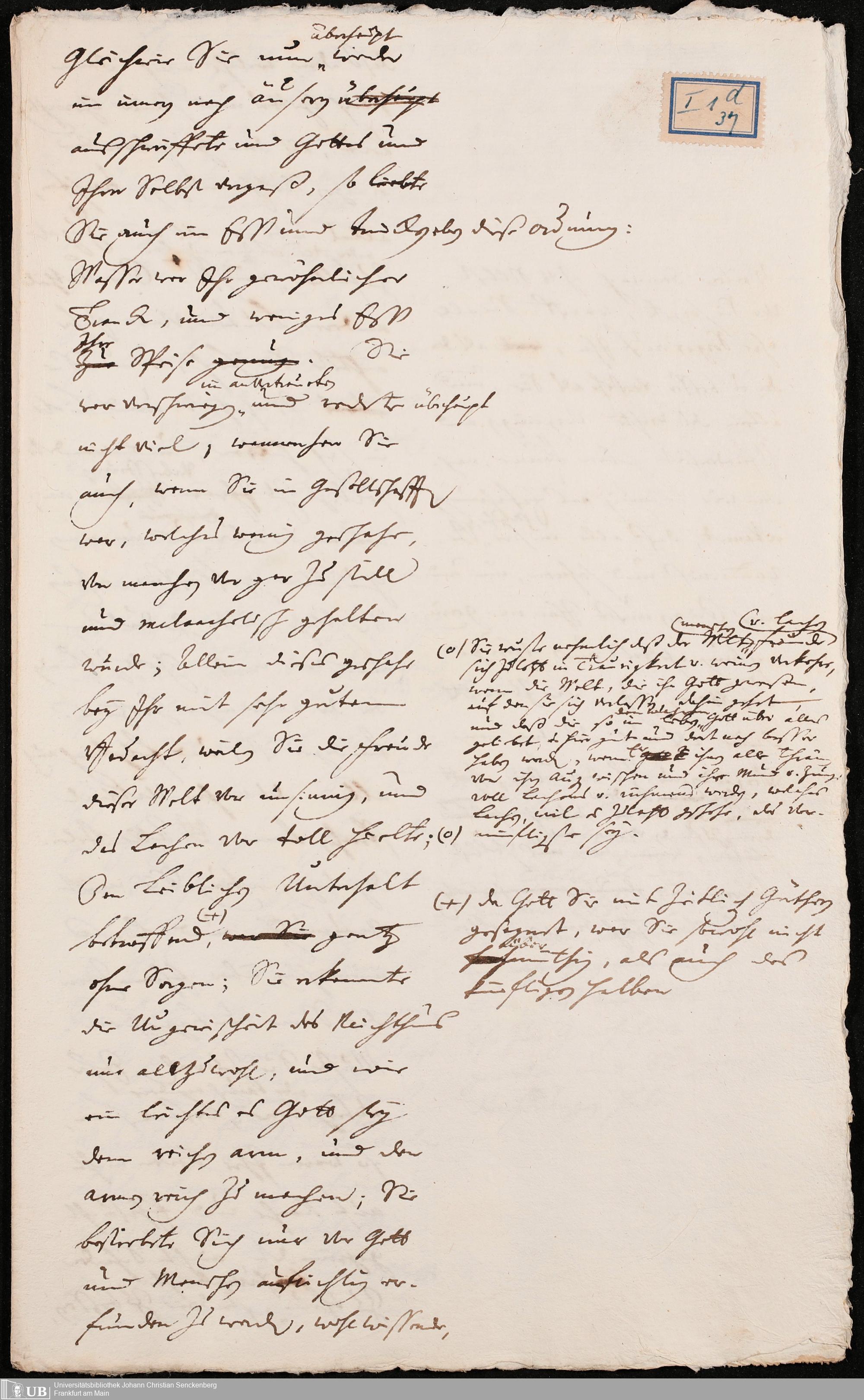 Na 31 Nachlass Johann Christian Senckenberg, 98 - Nachruf Johann Christian Senckenbergs auf seine Ehefrau Johanna Rebecca Riese