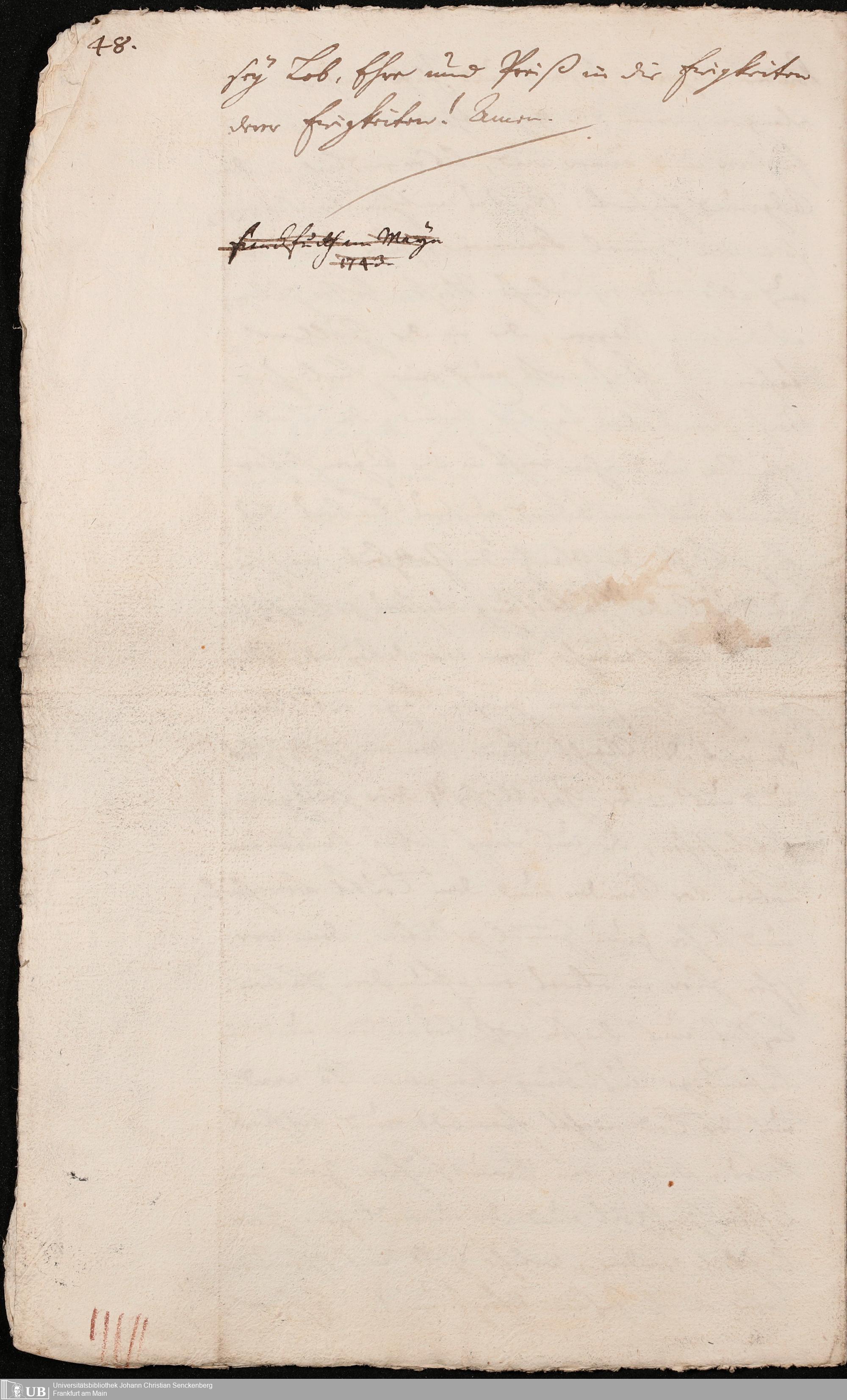 Na 31 Nachlass Johann Christian Senckenberg, 98 - Nachruf Johann Christian Senckenbergs auf seine Ehefrau Johanna Rebecca Riese