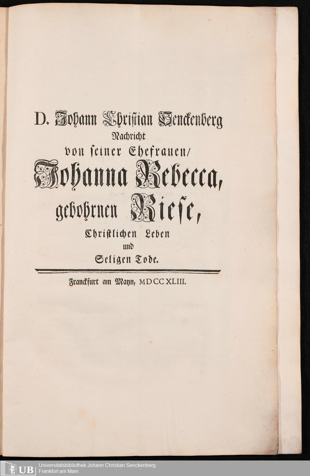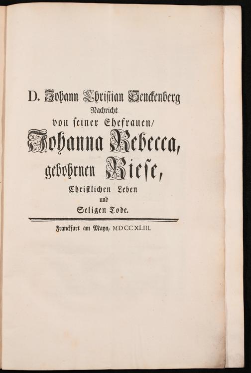 Na 31 Nachlass Johann Christian Senckenberg, 98 - Nachruf Johann Christian Senckenbergs auf seine Ehefrau Johanna Rebecca Riese