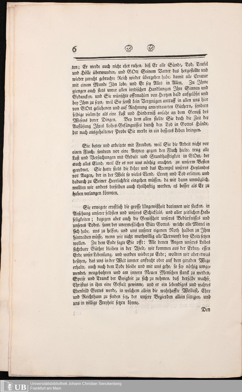 Na 31 Nachlass Johann Christian Senckenberg, 98 - Nachruf Johann Christian Senckenbergs auf seine Ehefrau Johanna Rebecca Riese