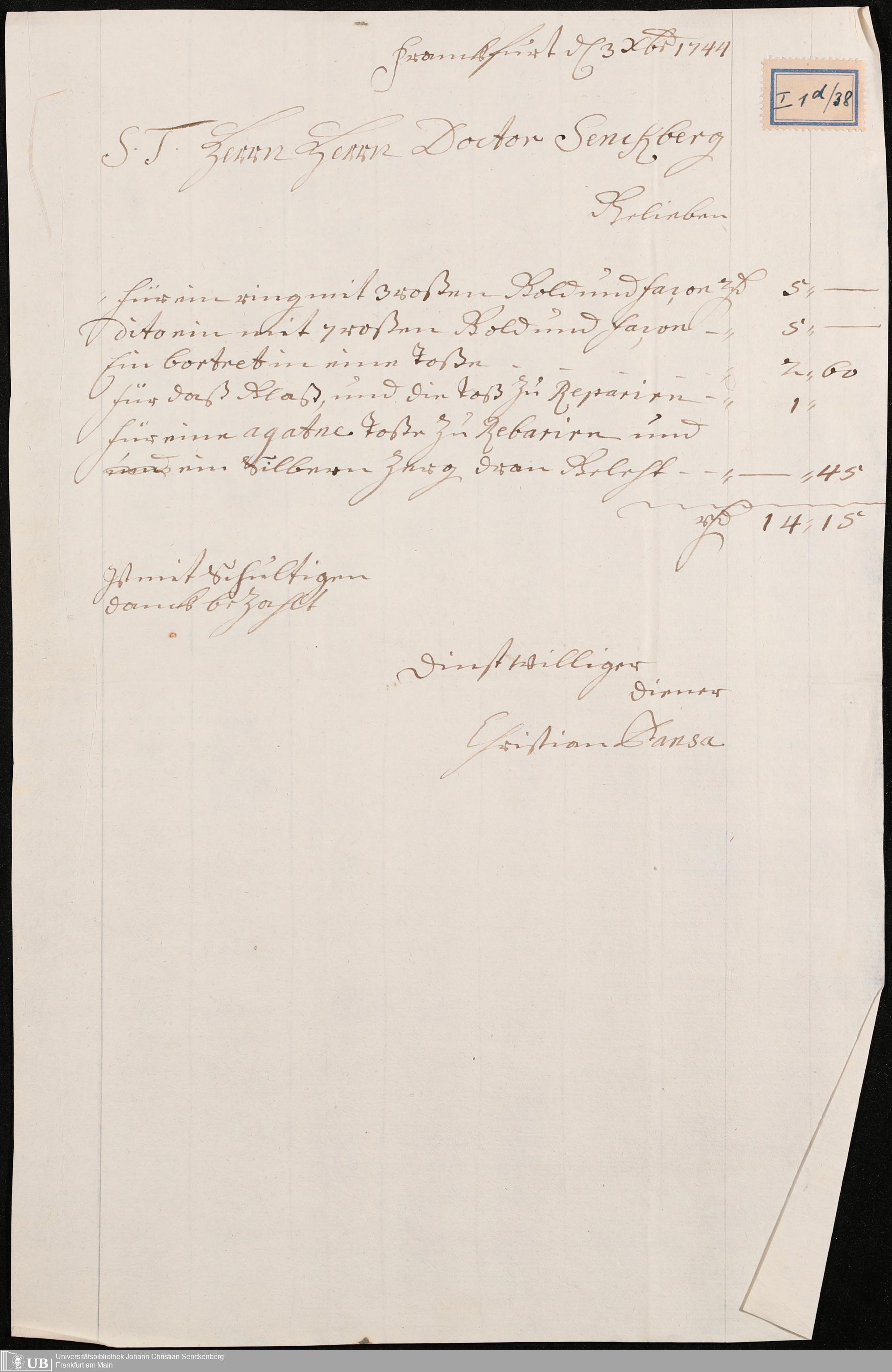 Nachlass Johann Christian Senckenberg