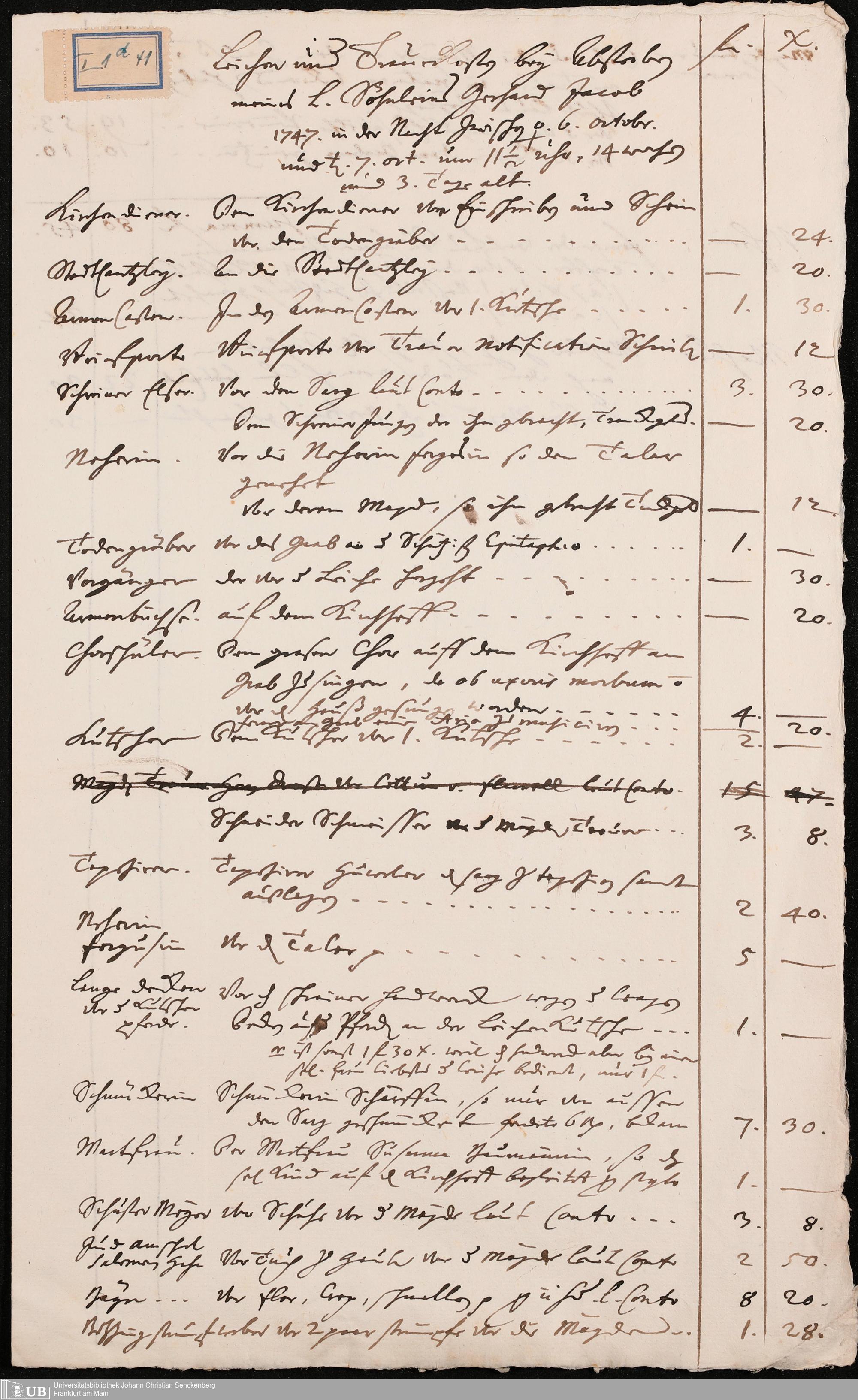 Na 31 Nachlass Johann Christian Senckenberg, 102 - Aufzeichnungen Senckenbergs zu Krankheit und Tod seiner Kinder