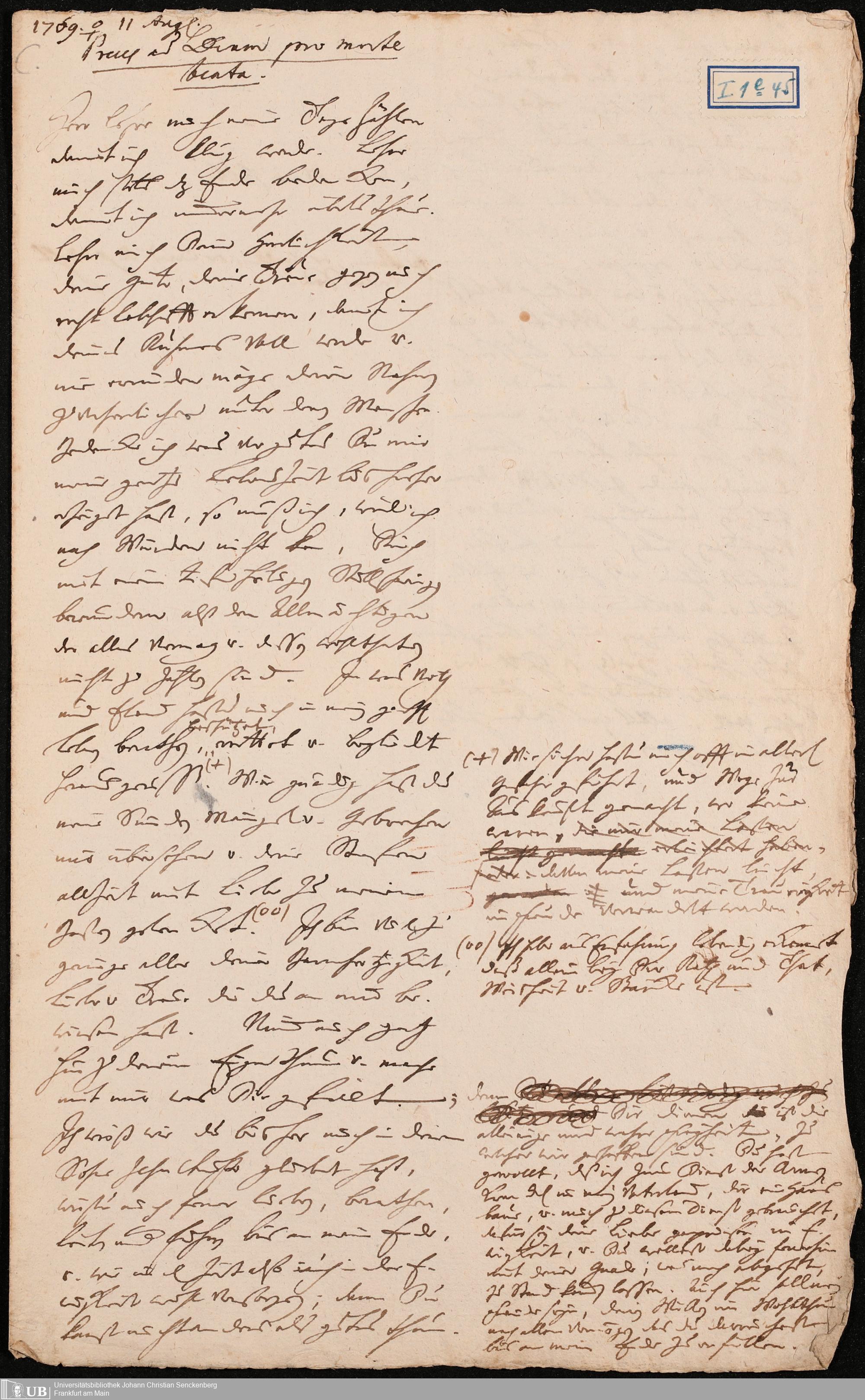 Na 31 Nachlass Johann Christian Senckenberg, 106 - Preces ad Deum pro morte beata