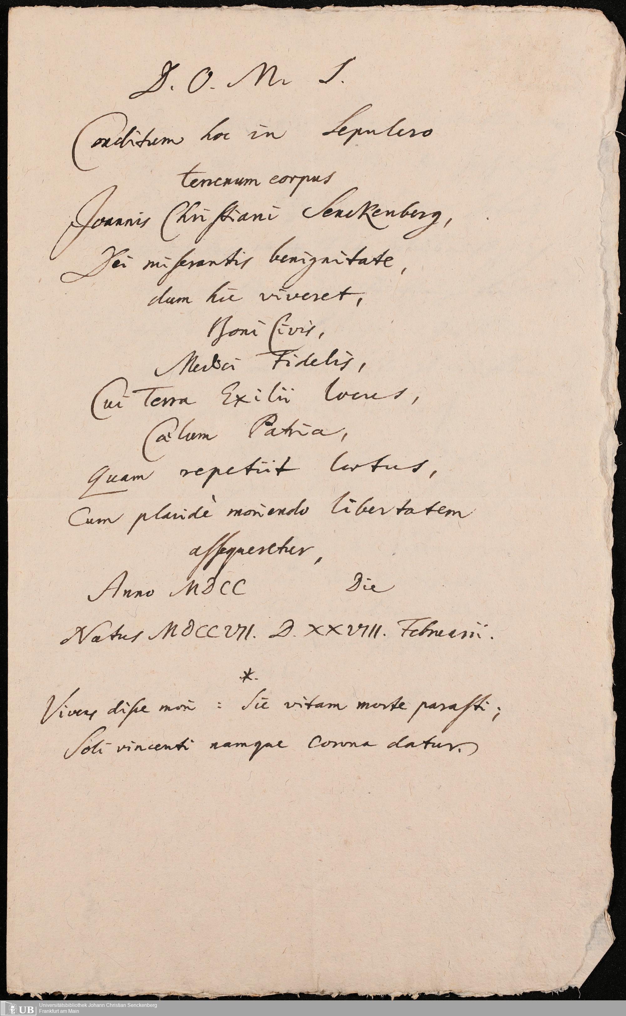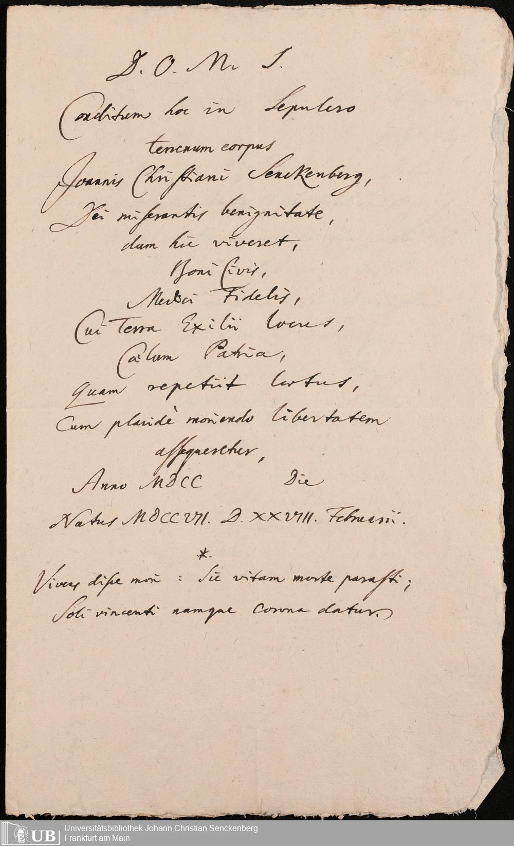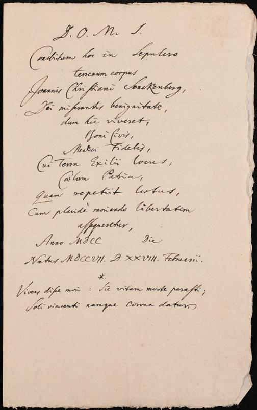 Na 31 Nachlass Johann Christian Senckenberg, 107 - Aufzeichnungen und Bestimmungen Senckenbergs zu seiner Grabstätte und deren Inschriften