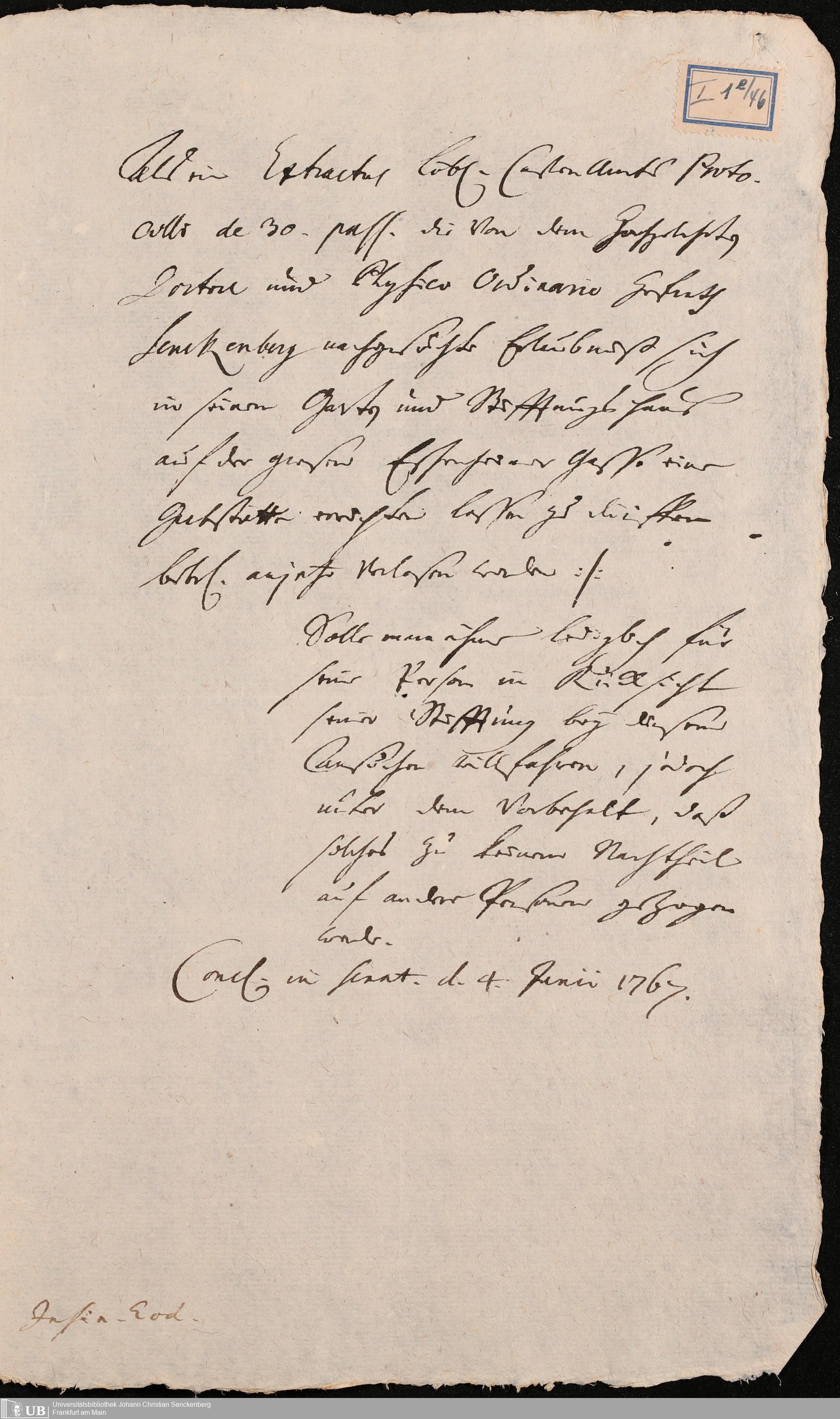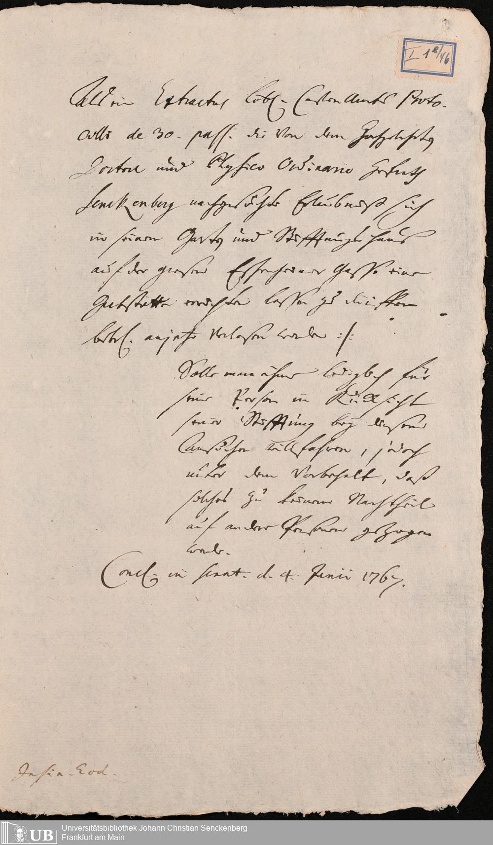 Nachlass Johann Christian Senckenberg