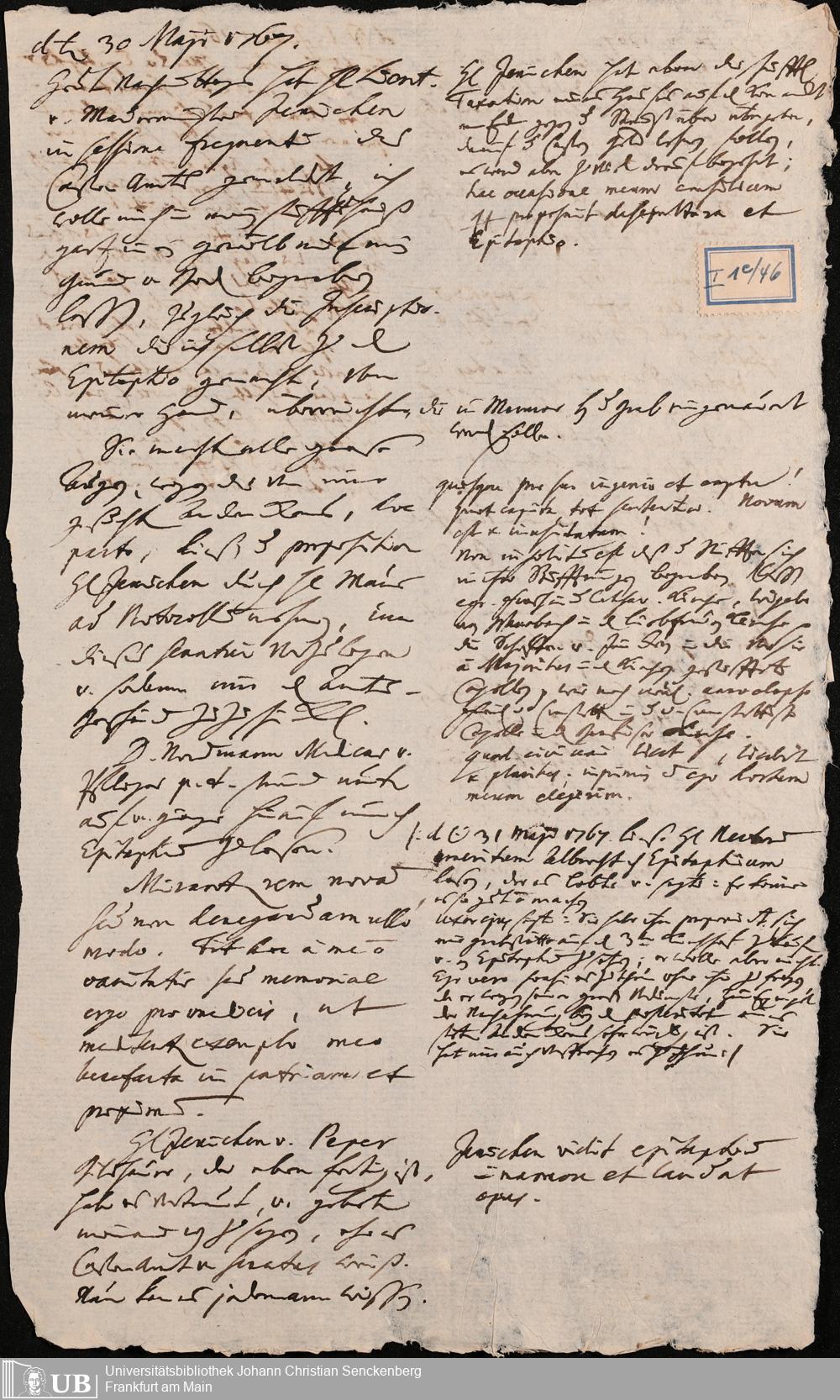 Na 31 Nachlass Johann Christian Senckenberg, 107 - Aufzeichnungen und Bestimmungen Senckenbergs zu seiner Grabstätte und deren Inschriften