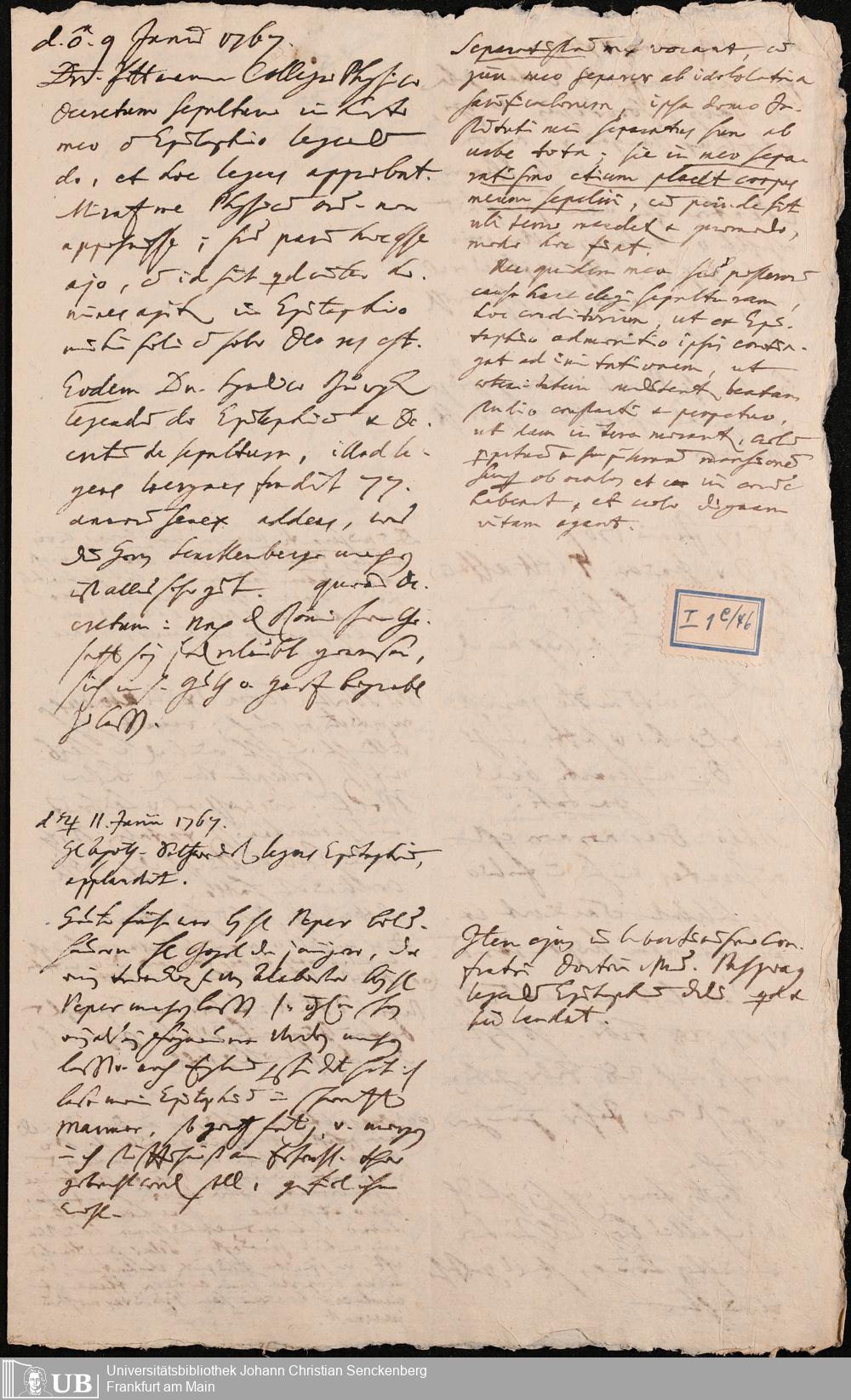 Na 31 Nachlass Johann Christian Senckenberg, 107 - Aufzeichnungen und Bestimmungen Senckenbergs zu seiner Grabstätte und deren Inschriften