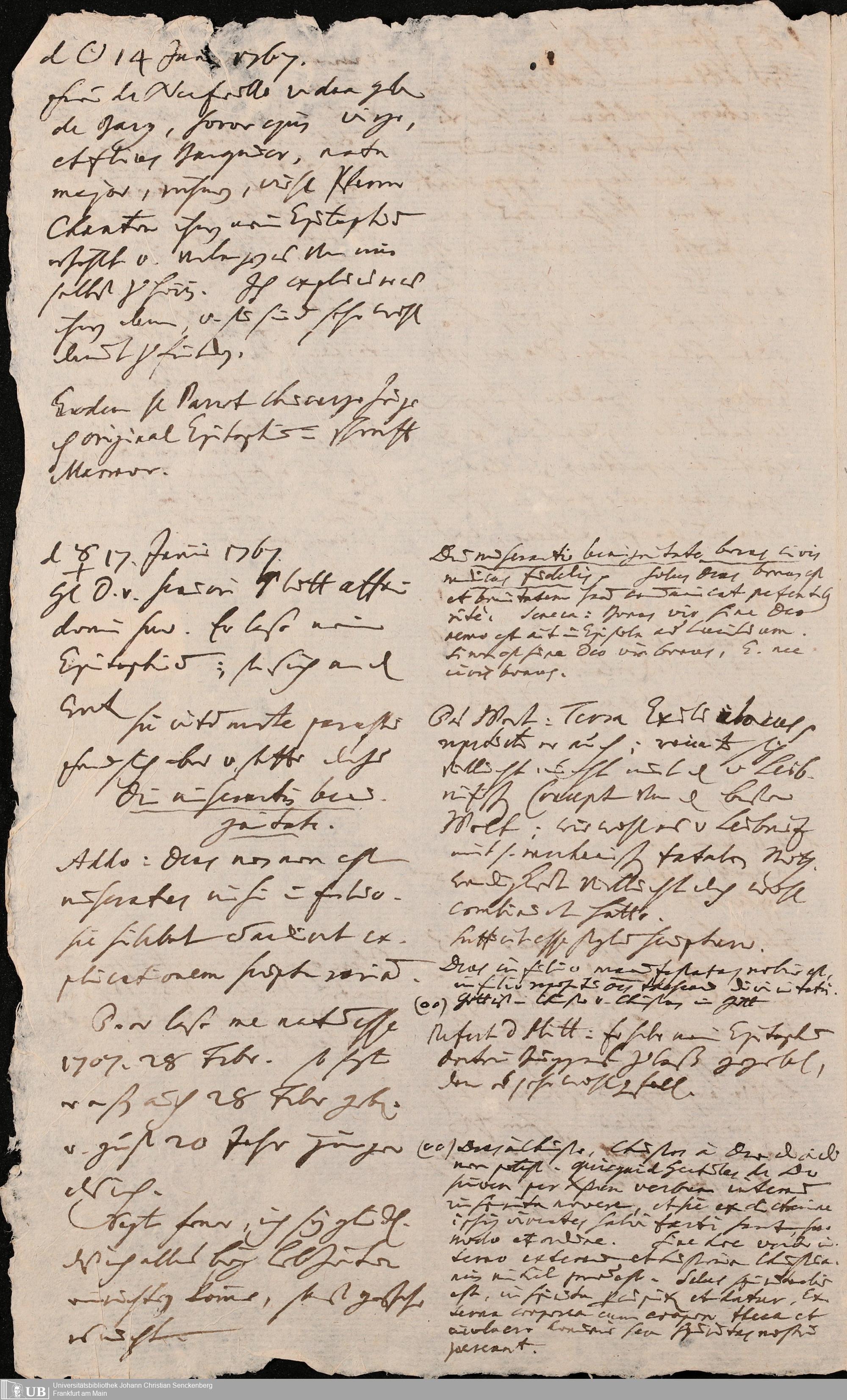 Na 31 Nachlass Johann Christian Senckenberg, 107 - Aufzeichnungen und Bestimmungen Senckenbergs zu seiner Grabstätte und deren Inschriften