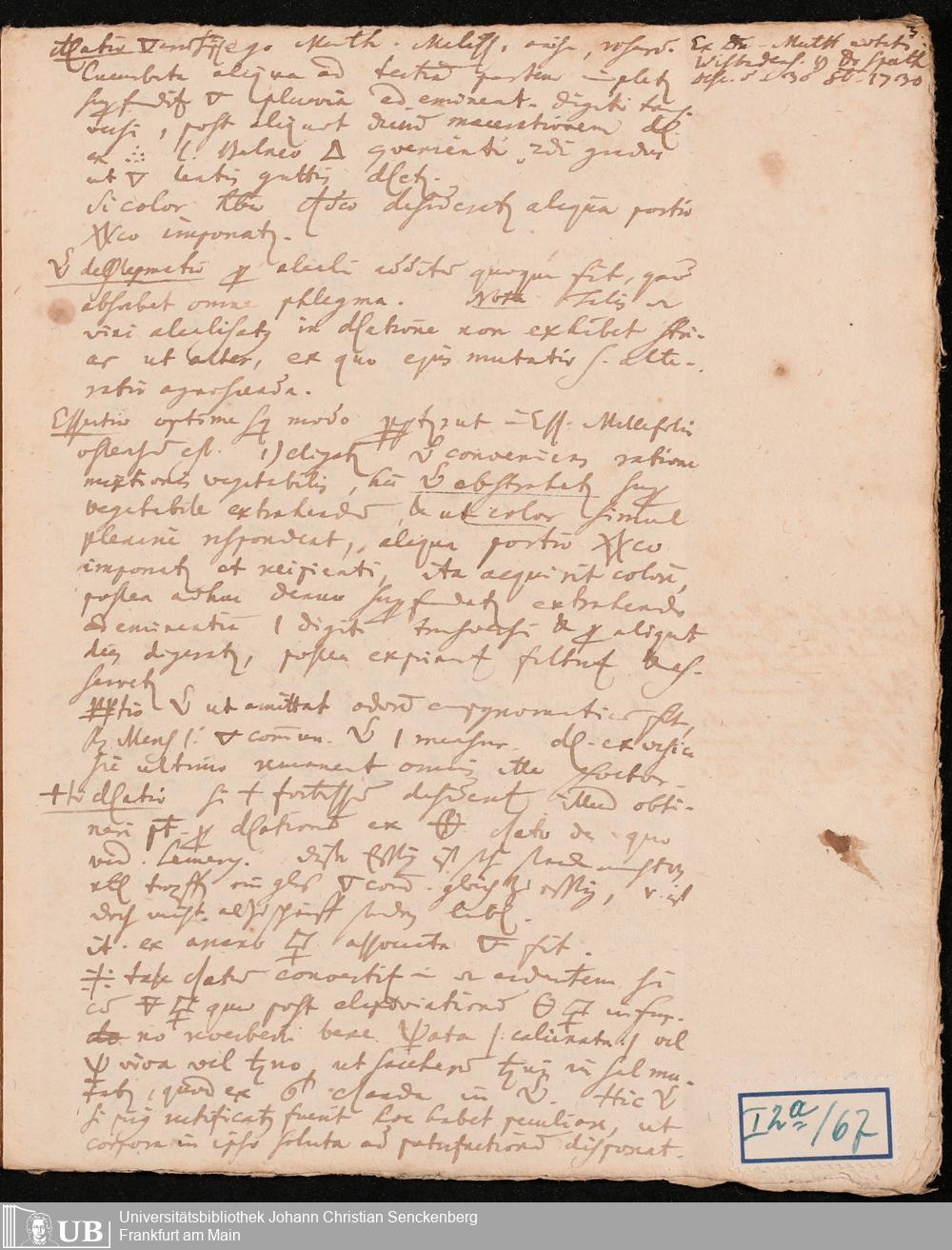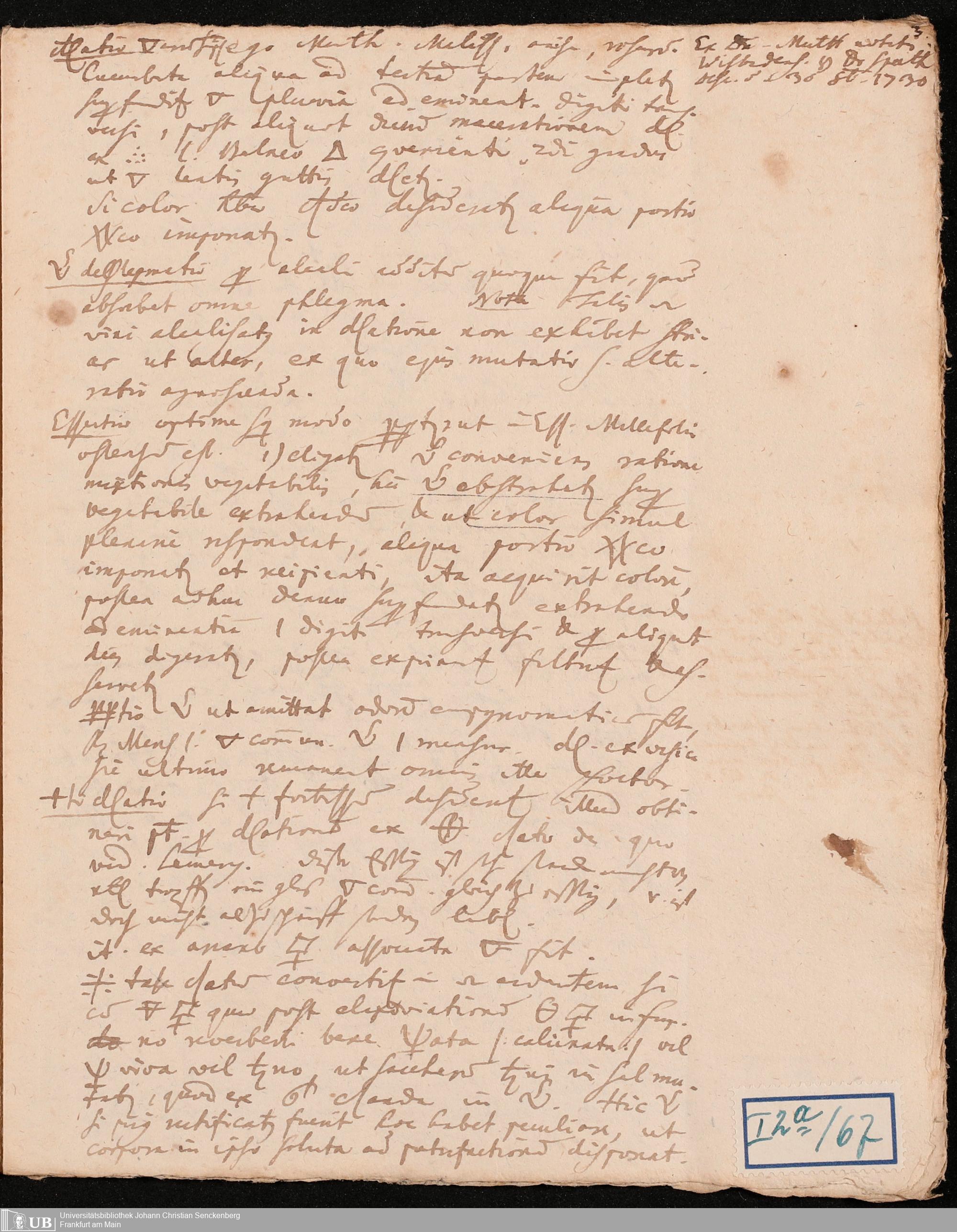 Na 31 Nachlass Johann Christian Senckenberg, 134 - Collectanea chymmico-pharmaceutica I