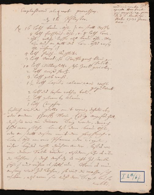 Na 31 Nachlass Johann Christian Senckenberg, 134 - Collectanea chymmico-pharmaceutica I
