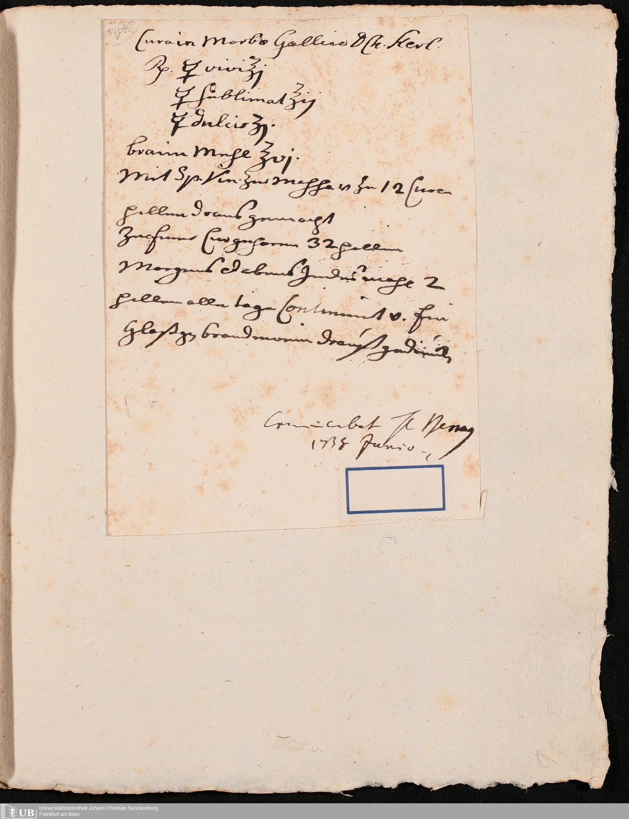 Na 31 Nachlass Johann Christian Senckenberg, 134 - Collectanea chymmico-pharmaceutica I
