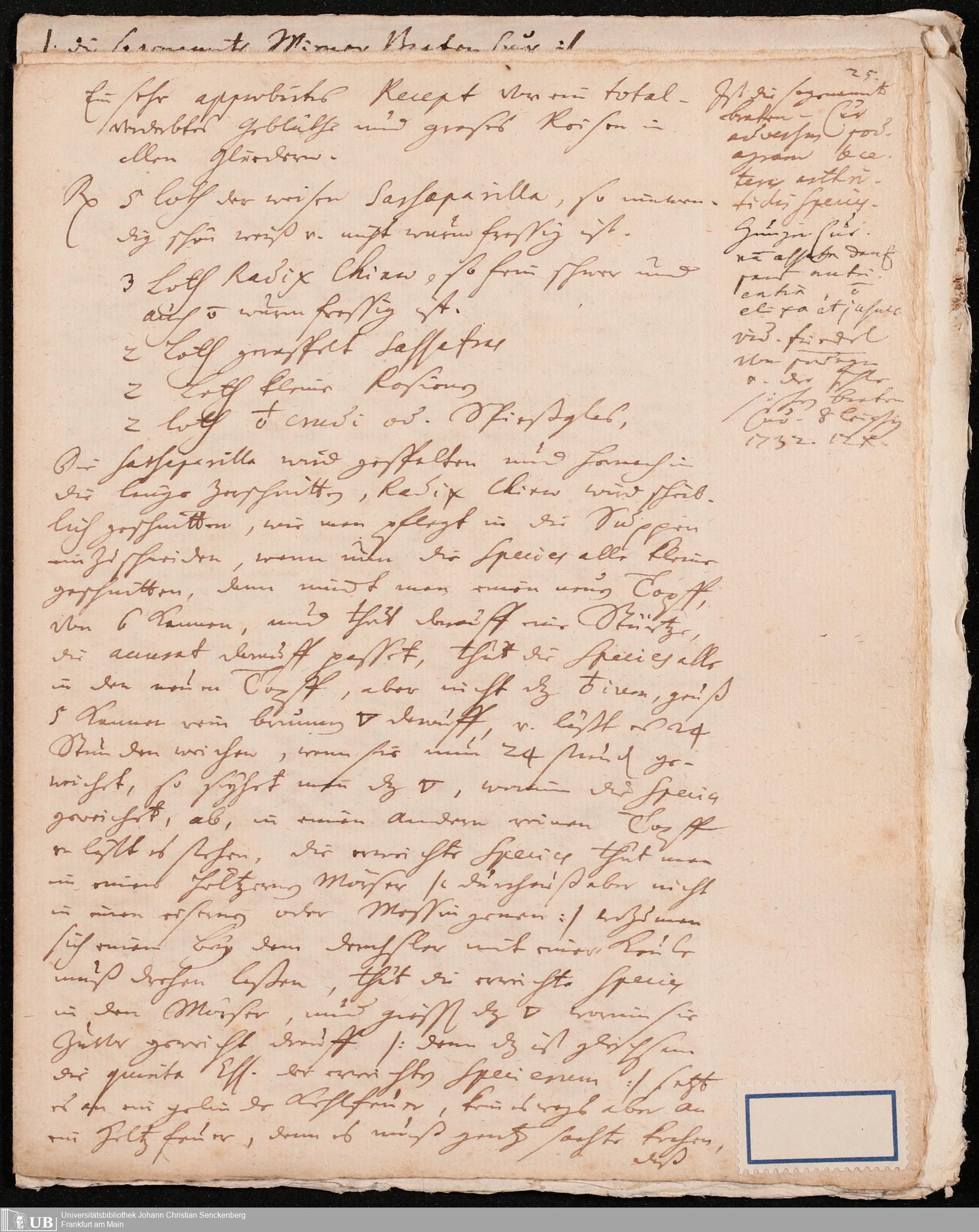 Na 31 Nachlass Johann Christian Senckenberg, 134 - Collectanea chymmico-pharmaceutica I