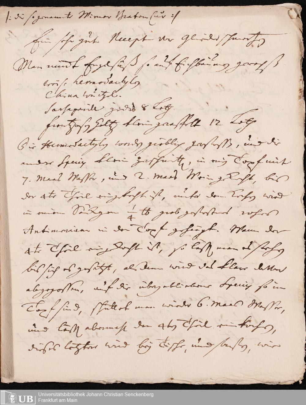 Na 31 Nachlass Johann Christian Senckenberg, 134 - Collectanea chymmico-pharmaceutica I