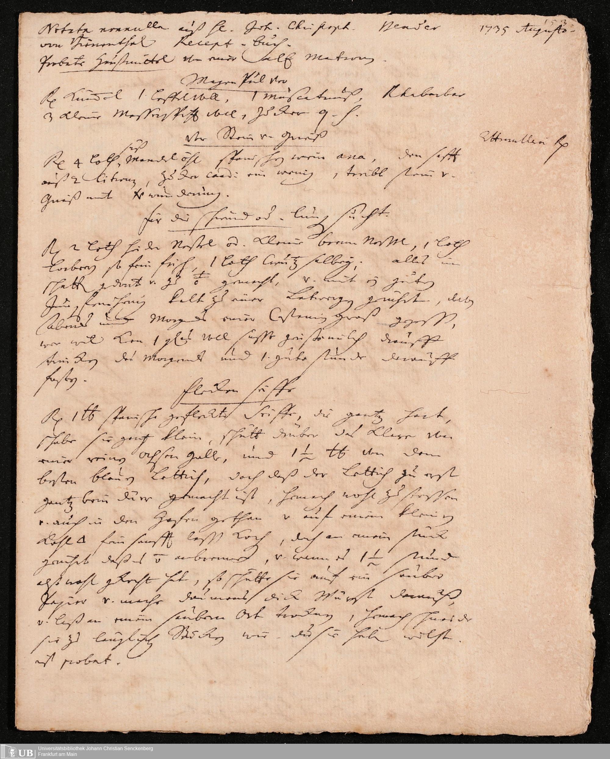 Na 31 Nachlass Johann Christian Senckenberg, 134 - Collectanea chymmico-pharmaceutica I